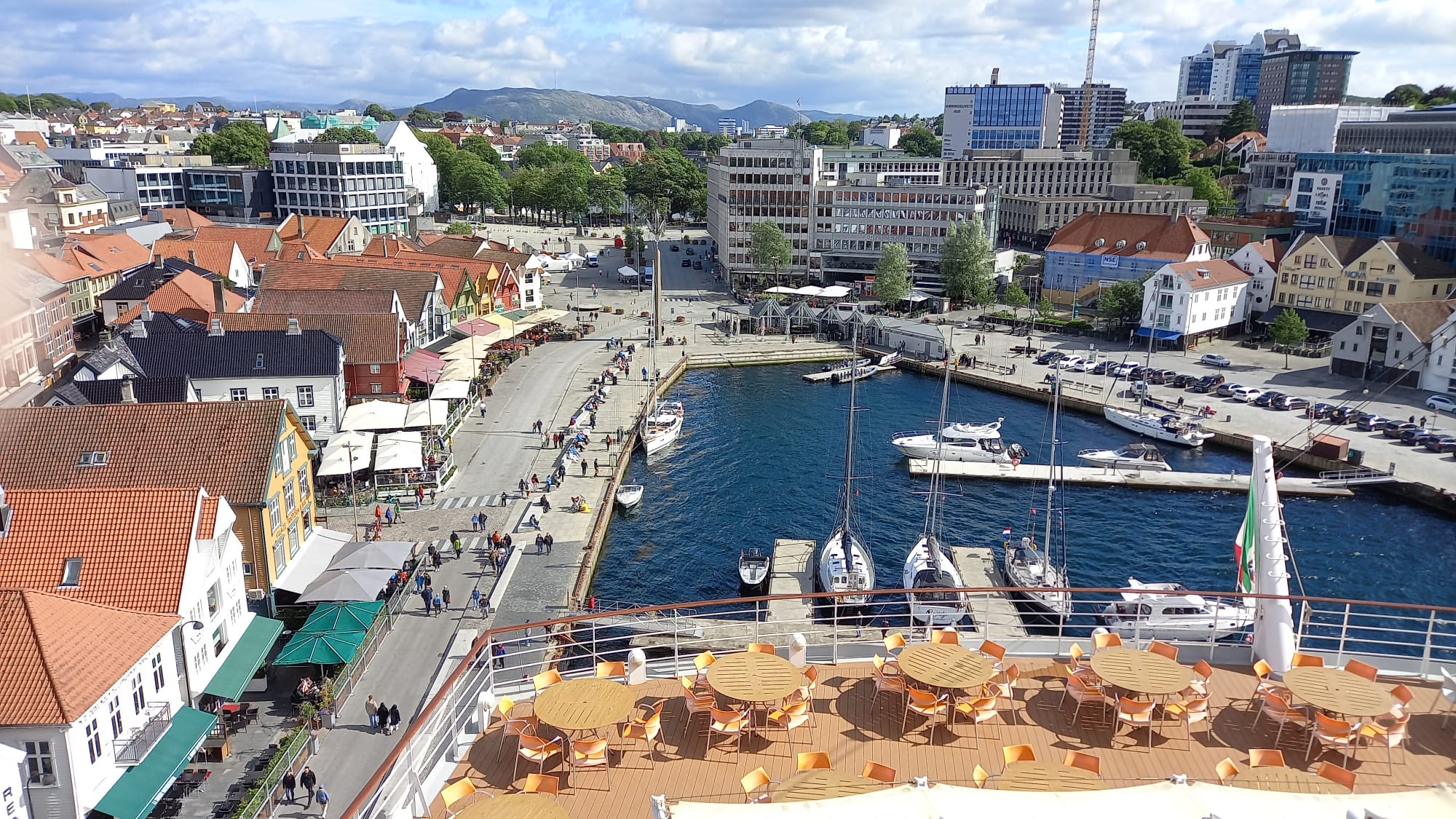Gemeinsam zu zweit sitzen wir später an der Oceanbar bei leckeren Kaltgetränken. Das Wetter ist inzwischen viel besser und so können wir einen letzten Blick auf das sonnige Stavanger genießen.