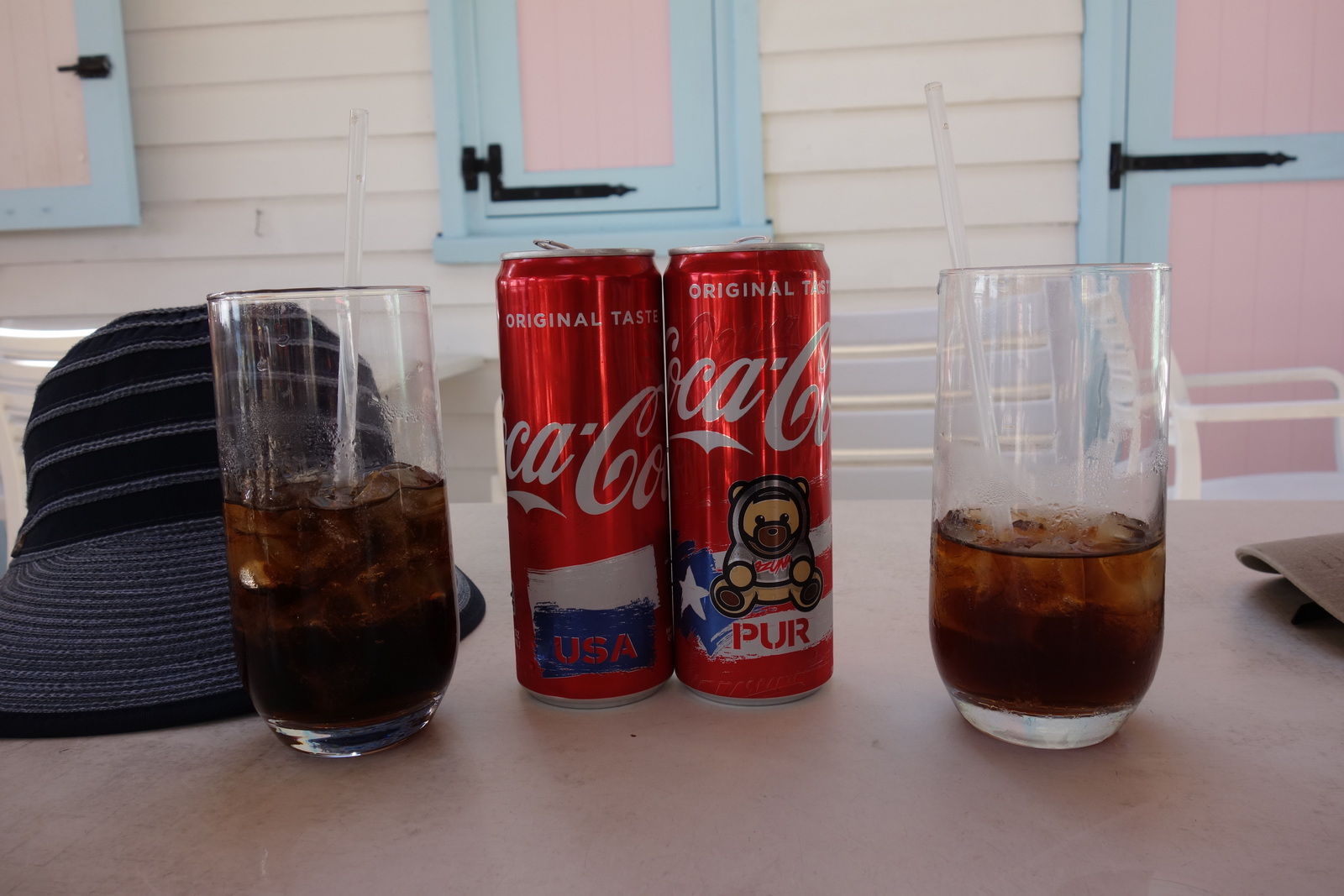 Wir brauchen jetzt erstmal was anderes. Die Träger verordnen daher jetzt allen erstmal eine Ruhepause. Lokal mit Strandblick und Trinkpause. Im finanziellen Ergebnis, den Nepp an der Holzbude in St. Lucia noch im Kopf, angenehm moderat. Wegen dem Aufdruck eines Bären bestehen wir dann auf die Mitnahme der leeren Dose.