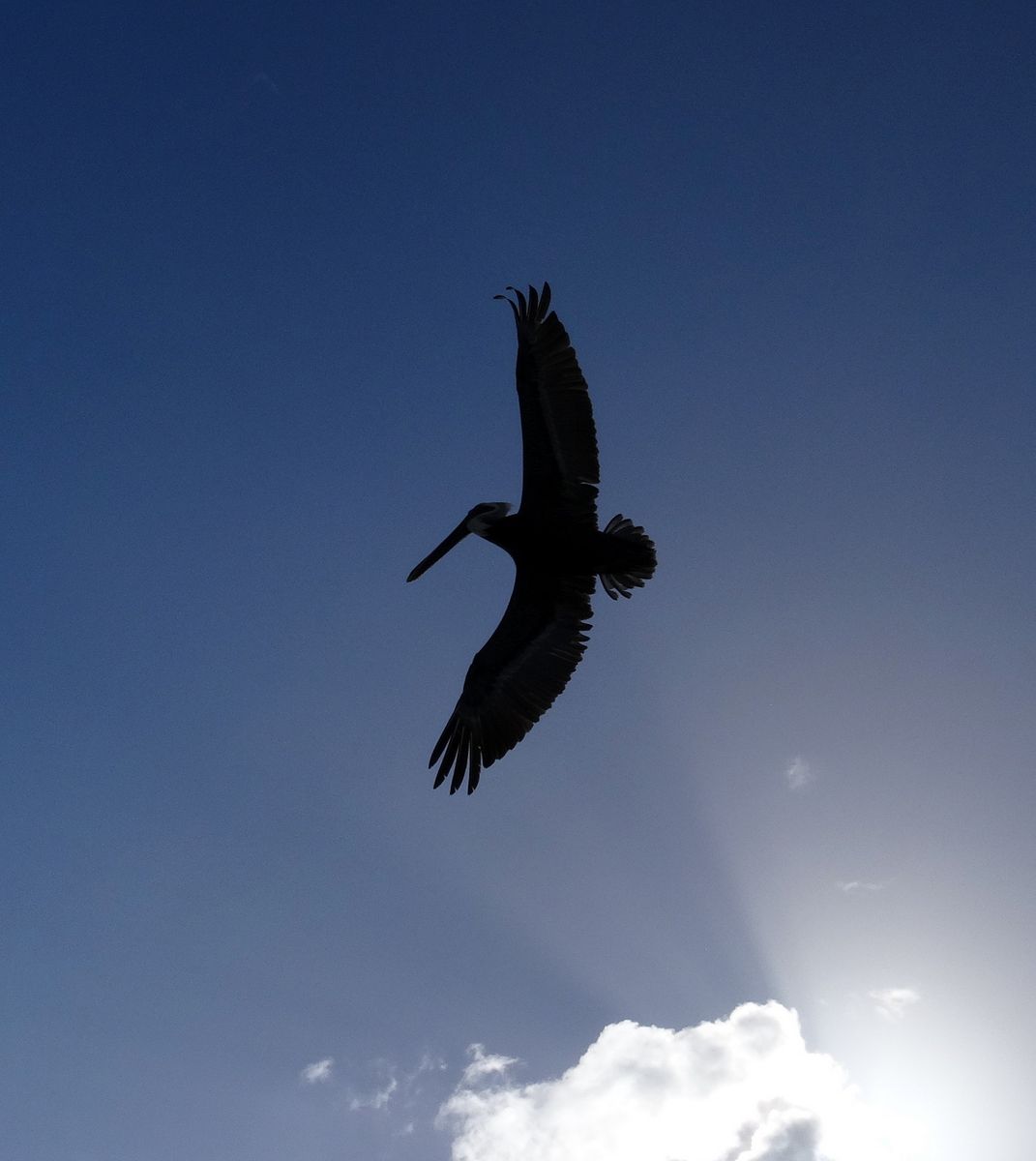 Aber auch so ist es ganz nett hier mit diesem Ausblick. Und wer weiß, ob wir sonst, auf dem dröhnenden Jetski, den jagenden Pelikan gesehen hätten...