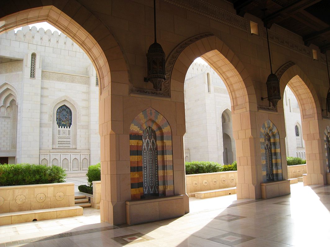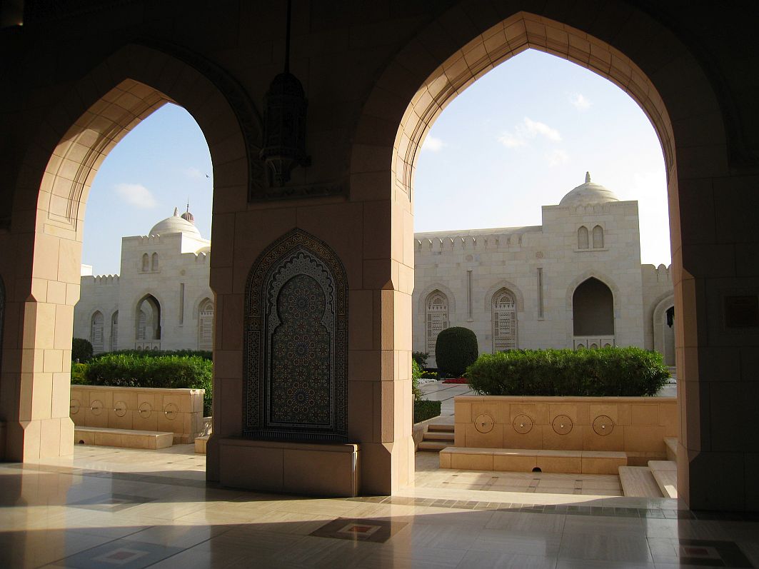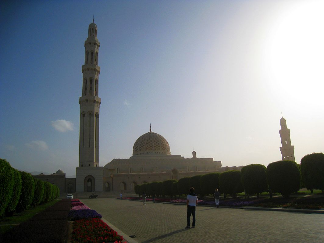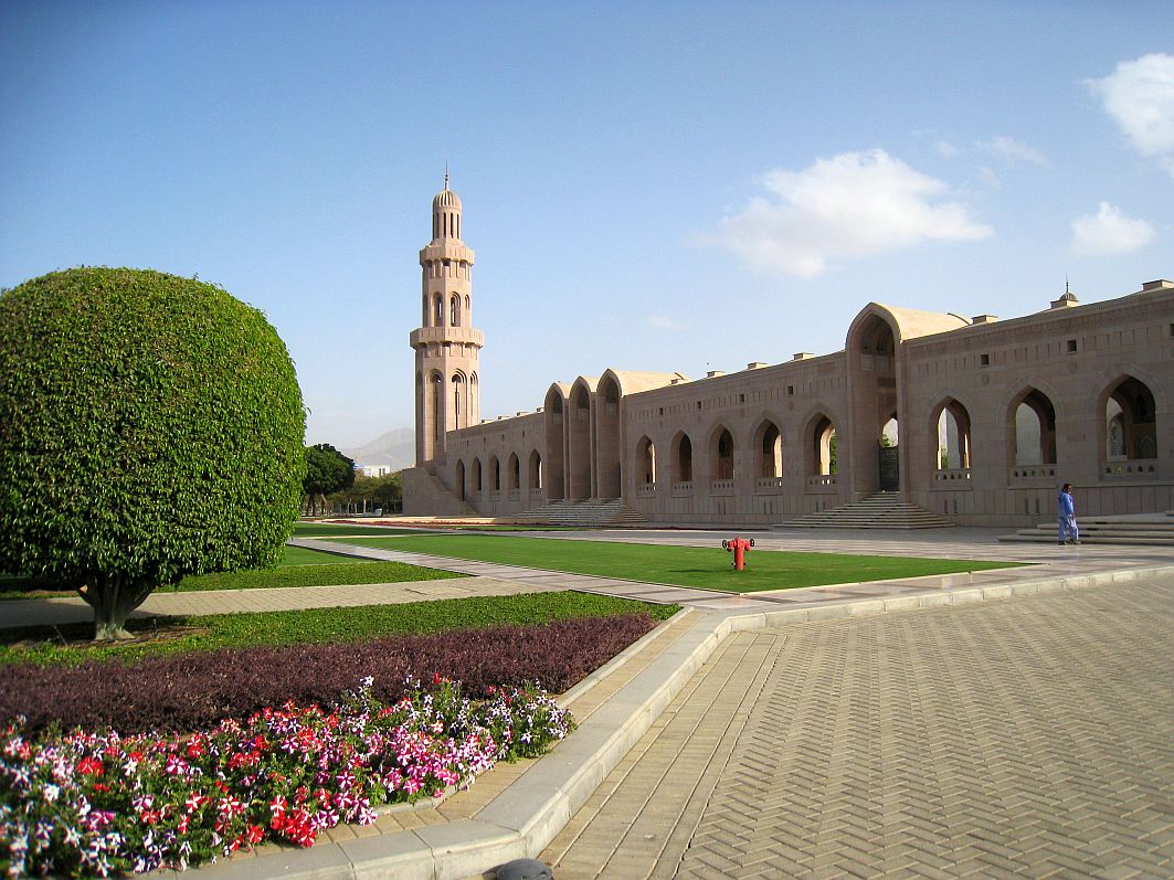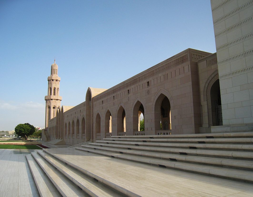 In einer Bauzeit von sechs Jahren entstand diese Moschee, deren Anlage rund 416.000 m² umfasst. Die fünf Minarette, deren höchstes eine Höhe von 90 Metern hat, symbolisieren die fünf Säulen des Islam: Bekenntnis, Gebet, Almosen, Fasten und die Pilgerreise. Die Sultan Qaboos Grand Mosque beherbergt den einstmals größten Teppich der Welt. Weberinnen benötigten drei Jahre für den rund 70 x 60 Meter großen Teppich. In der Kuppel hängt ein rund acht Tonnen schwerer Kronleuchter aus Swarovski-Kristallen.