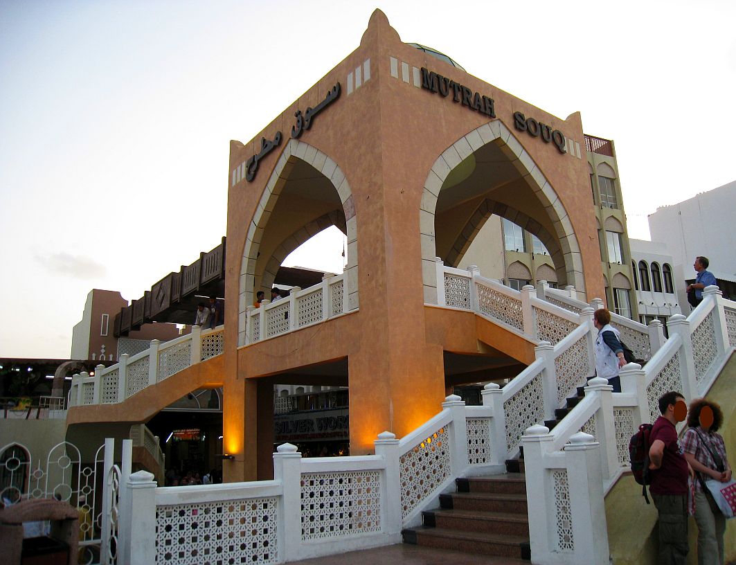 Doch nun geht es zum Muttrah-Souk, laut meinem Reiseführer einem der schönsten Basare im Oman. Die kurze Strecke dorthin legt unser Bus schnell zurück. Während das rollende Gefährt samt seiner Insassen sich wieder dem Meer und der Prachtstraße Corniche nähert, haben wir Zeit zur Betrachtung omanischer Baustile. Schicke, interessante Häuser, schneeweiß, verwinkelt, orientalisch und irgendwie teuer aussehend.