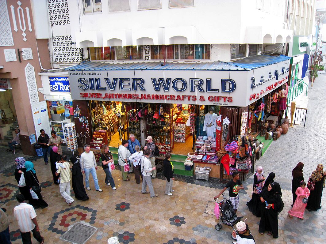Letzter Punkt unseres ausgiebigen Besuchsprogramms an diesem Tag ist der farbenfrohe, aber auch ein wenig geheimnisvoll wirkende Muttrah-Souk, direkt an der Corniche gelegen. Wir haben Zeit zur freien Verfügung. Und schon bummeln alle Gäste in Richtung dieses Shopping-Paradieses. Die Frauen voraus, die Männer – etwas abgefallen – hinterher. Warum wohl …?! Nun, vielleicht, weil sie wissen, dass sie ja Geldbörse und Kreditkarte sicher „am Mann“ verwahrt haben und die holden besseren Hälften deshalb sowieso erst einmal nur gucken und nicht kaufen dürfen?!