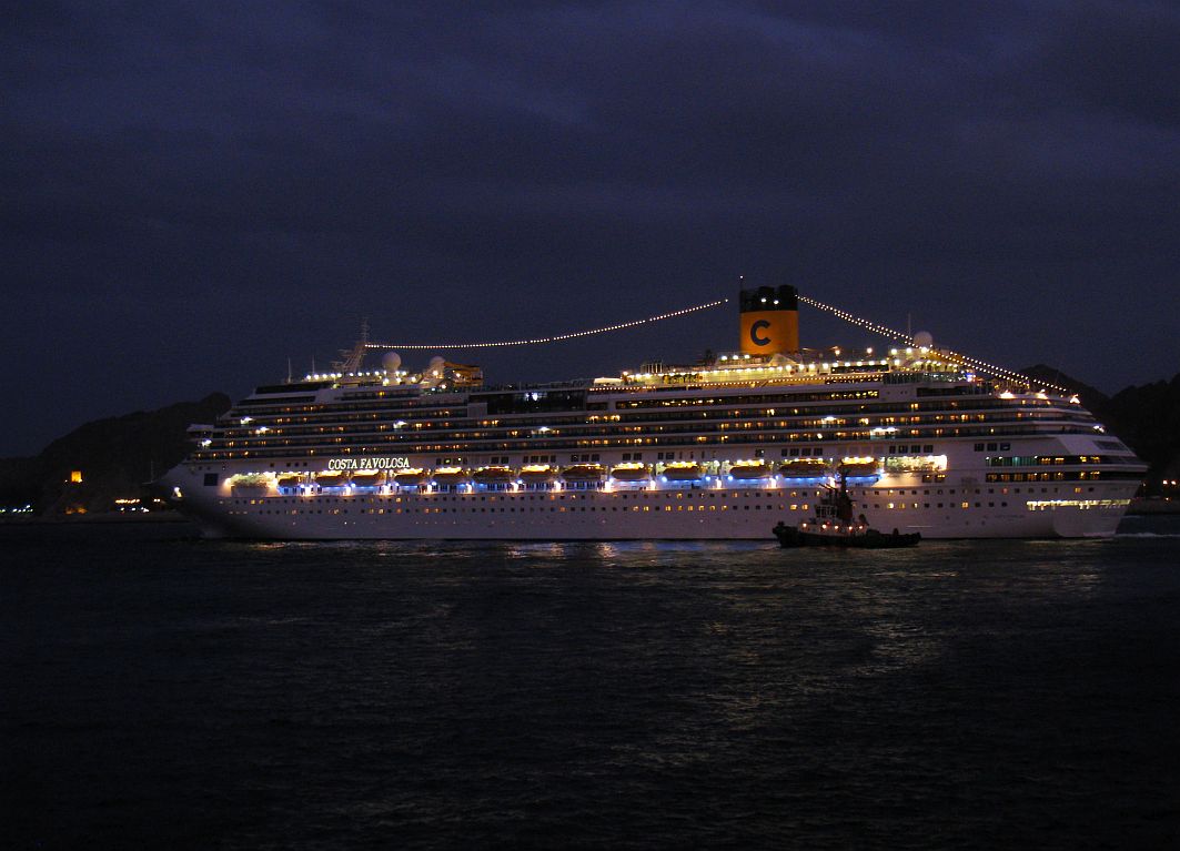 Nach einem langen und so erlebnisreichen Tag kehren wir gegen 18:00 Uhr nach Hause auf unsere schöne AIDAblu zurück. In meiner Kabine angekommen, kann ich von meinem Balkon gerade noch beobachten, wie die „Costa Favolosa“ in See sticht.