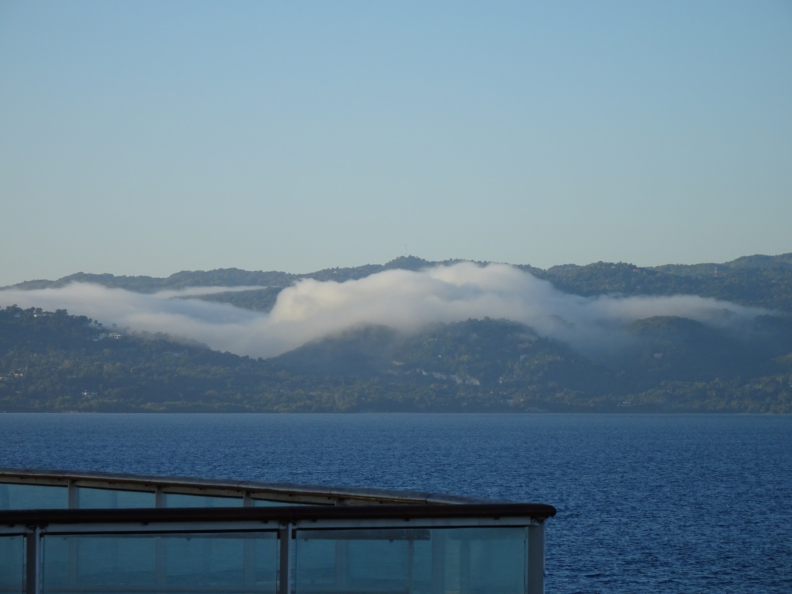 Na bitte. Einmal außerplanmäßig dran vorbeigefahren, laufen wir nun, die Berge noch von Morgennebel überzogen auf Jamaika ein.