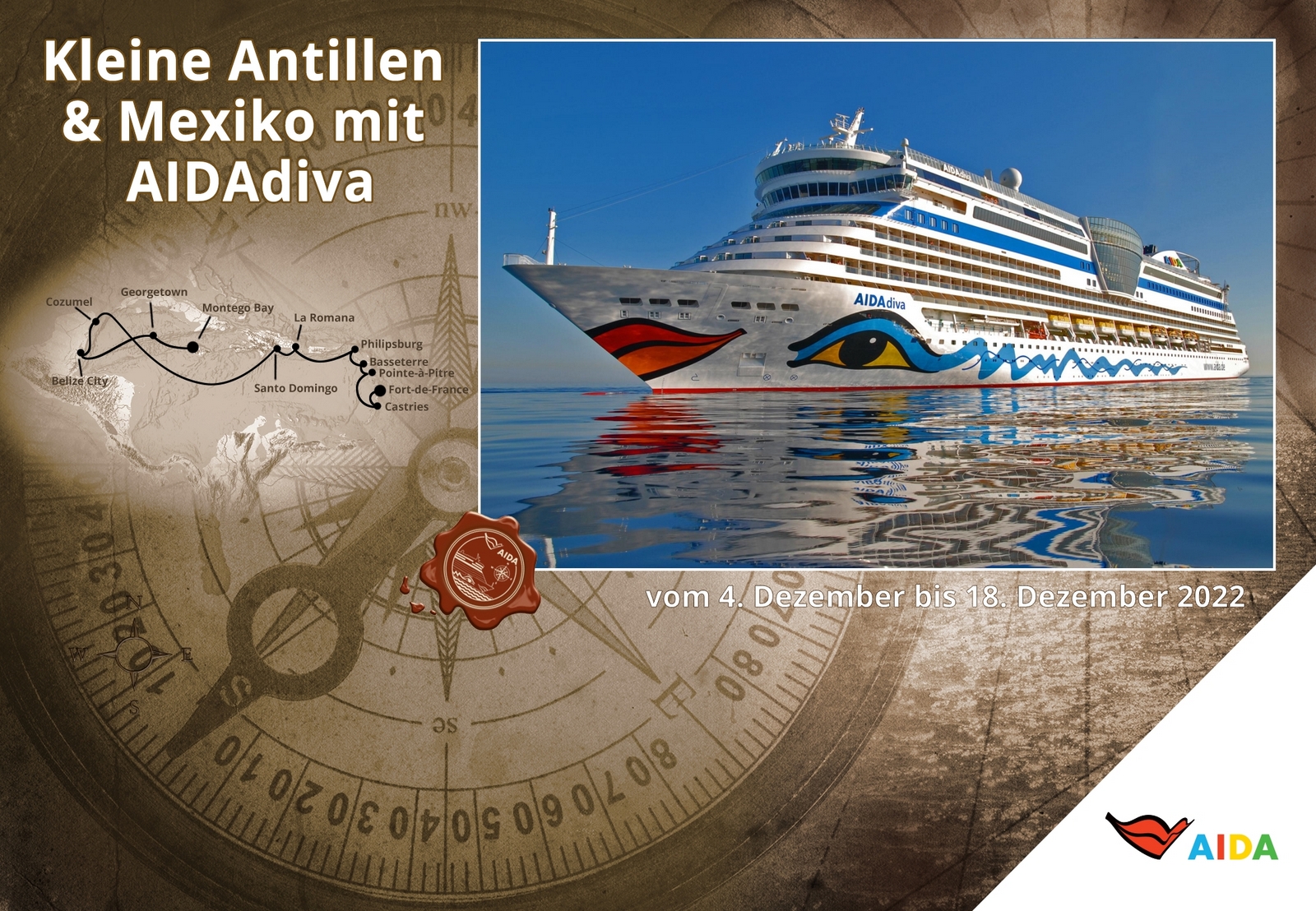 So können wir im Theatrium noch das WM-Endspiel Frankreich-Argentinien erleben. Bis zum bitteren Ende nach Elfmeterschießen. Der Träger findet das Ergebnis tatsächlich bitter, hat er doch beim Aida-Tippspiel mitgemacht und hofft nun zum Abschluss auf einen französischen Sieg. So aber wird er am Ende zwar nicht der Sieger, sondern immerhin 42. von 1600 Teilnehmern, versuche ich ihn zu trösten. Auch wenn mich der Gewinn eines Reisegutscheins durchaus interessiert hätte… und nicht nur mich!
