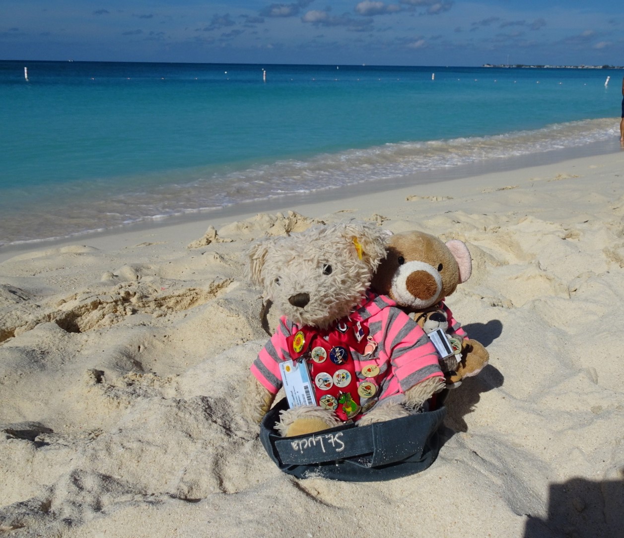 Im Hafenterminal wird nun schon mal für den Rückflug eingecheckt. Die Koffer sind wir schon mal los und die Teddys sind im Handgepäck. Umgekehrt wäre jetzt also schlecht.