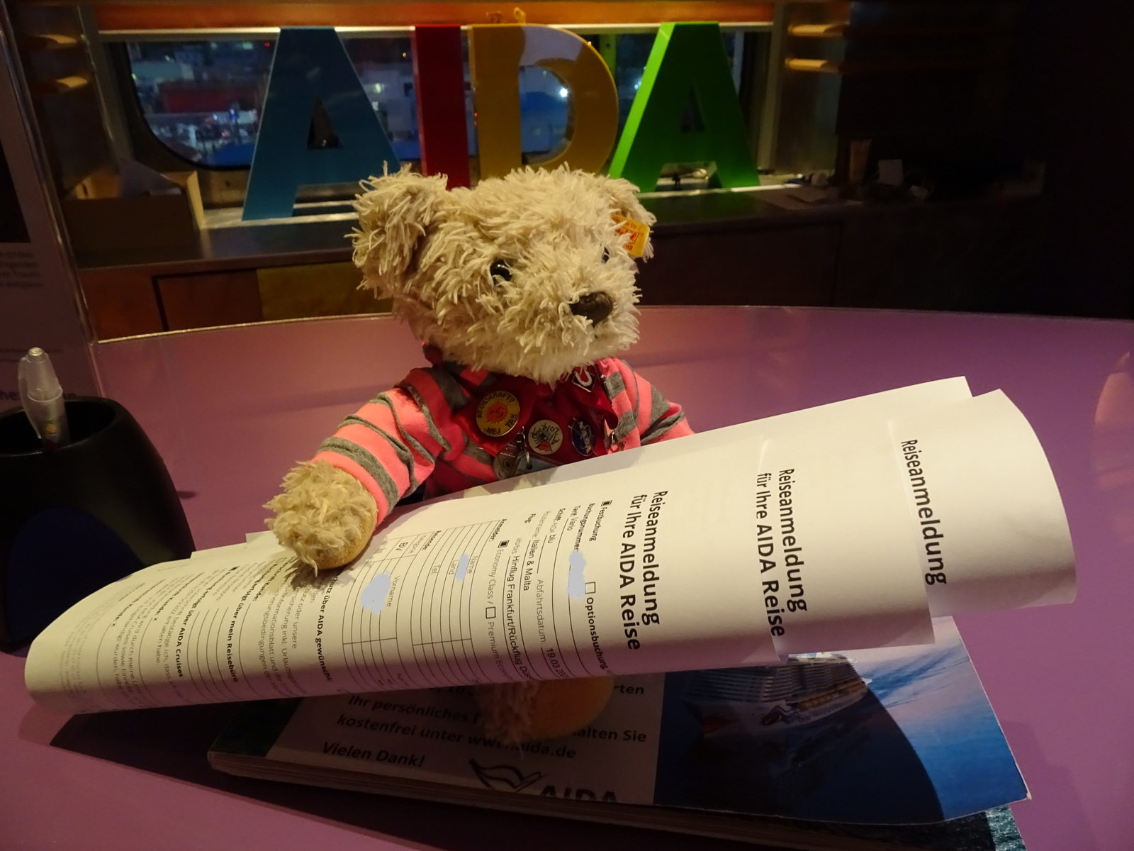 Nicht mehr länger warten kann jetzt das Ausfüllen der Einreisepapiere für Jamaika. Mit dem Aida Kugelschreiber auf Papierformular und möglichst fehlerfrei.