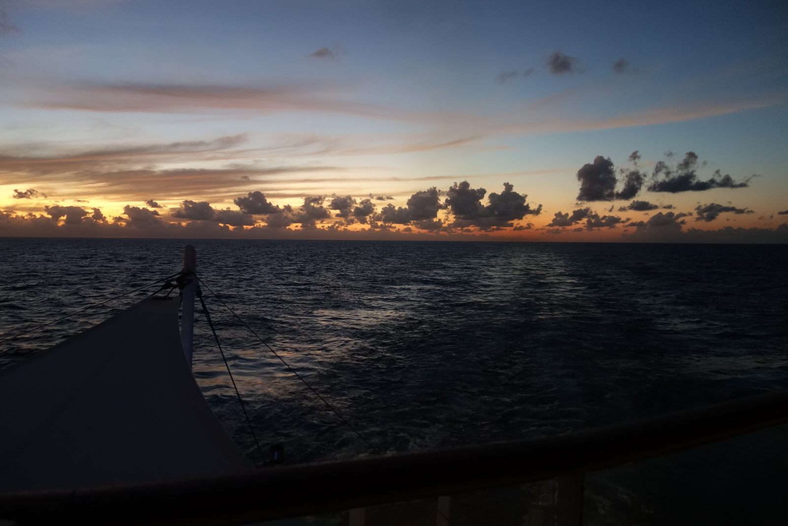 Müll hat sich in der Kabine vergleichsweise nicht so viel angesammelt, aber ein ebenfalls von Menschen geschaffener Berg, ein Berg voll Wäsche. Und da wir morgen aus der Kabine zwangsevakuiert werden, gilt es diesen Berg nun abzutragen und stattdessen in den Koffern aufzutürmen. Ohne uns. Wer nichts mitschleppt, hat nichts zu packen und daher jetzt Freizeit. Welche noch schöner wäre, wenn der uns nochmal die Hängematte herrichten würde. Aber da müssen wir wohl bis zur nächsten Kreuzfahrt warten…