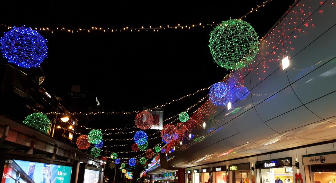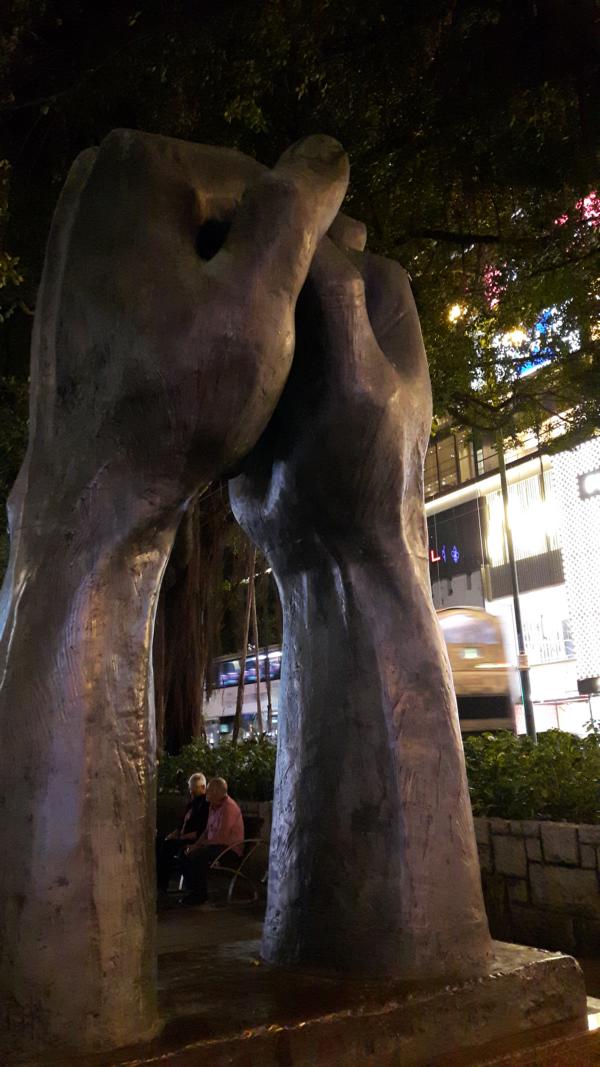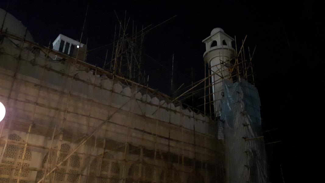 Der Kowloon-Park muss bestimmt am Tage auch schön sein. Jetzt in der Dunkelheit sprinte ich kurz die Treppe hoch und mache ein Foto von dem Minarett, das gerade eingerüstet ist.