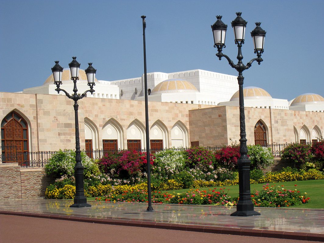 Unweit des Museums befindet sich der überwiegend für Repräsentationszwecke genutzte Al Alam-Palast von Sultan Qaboos.