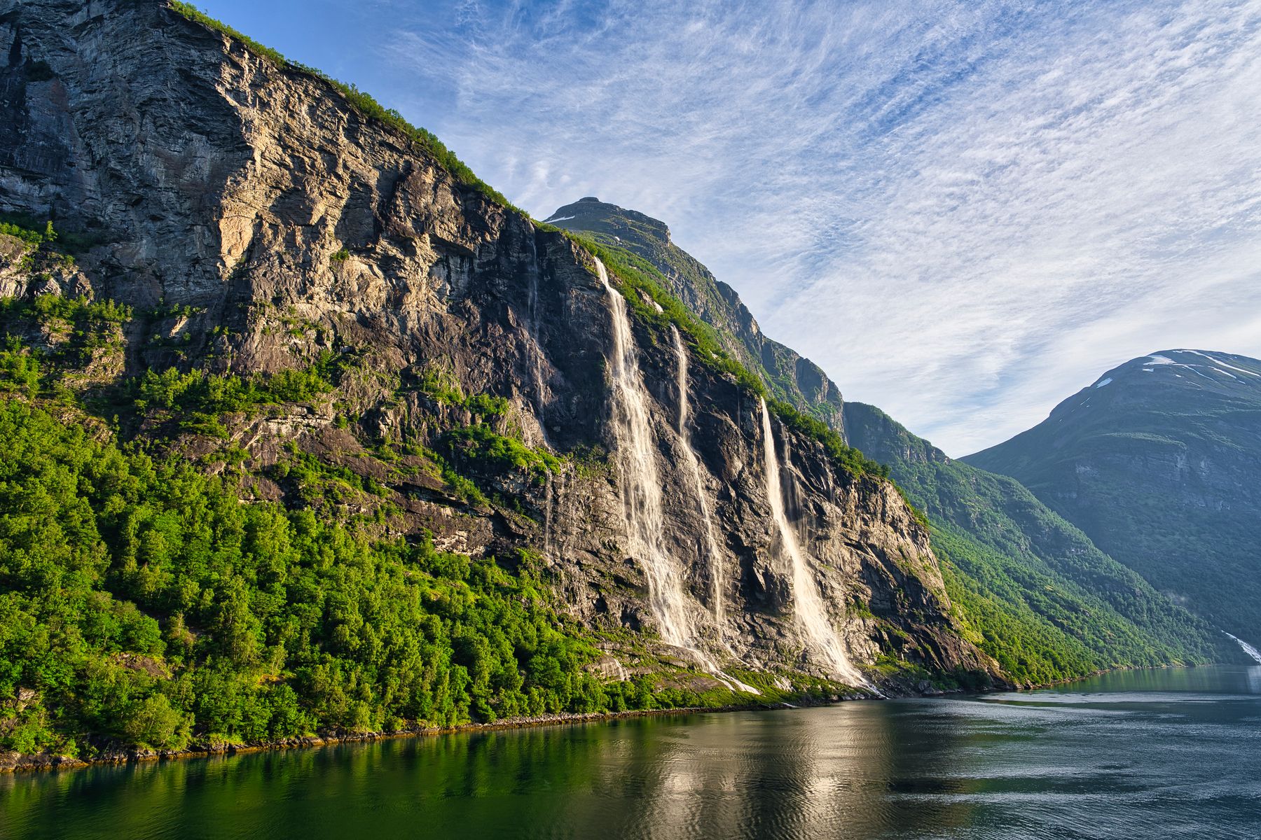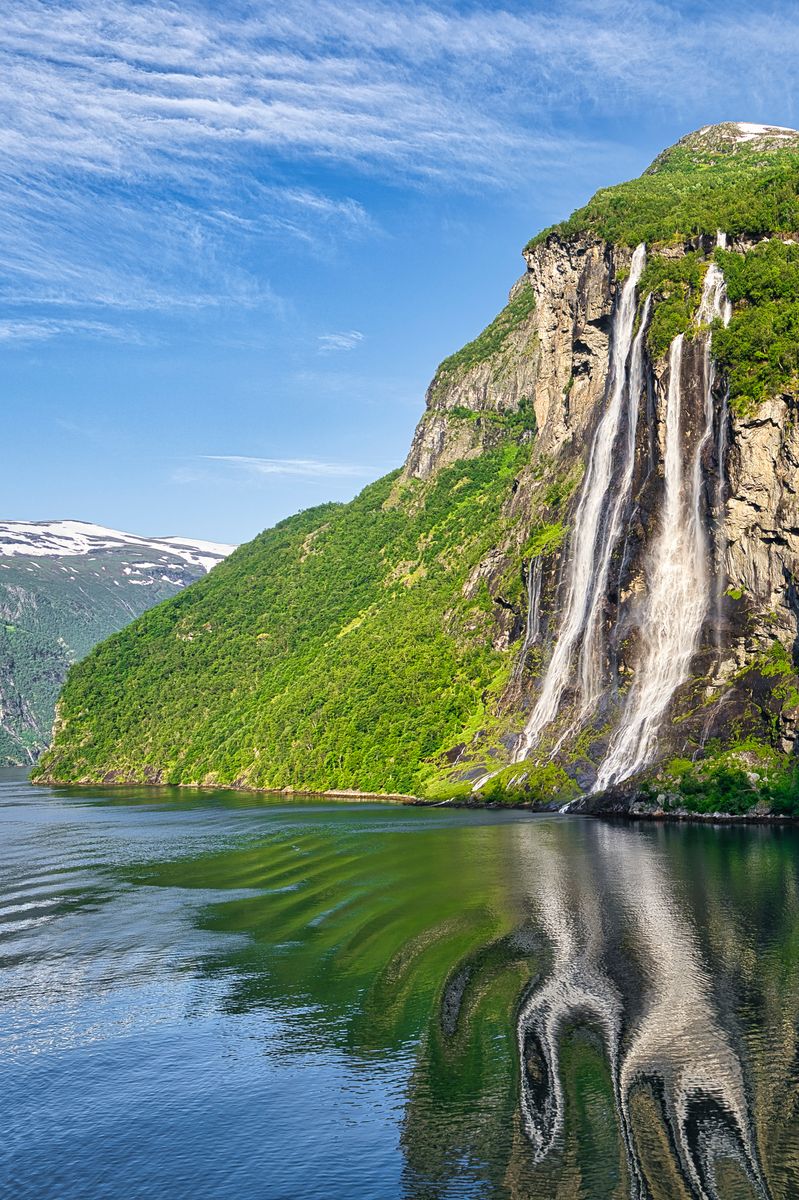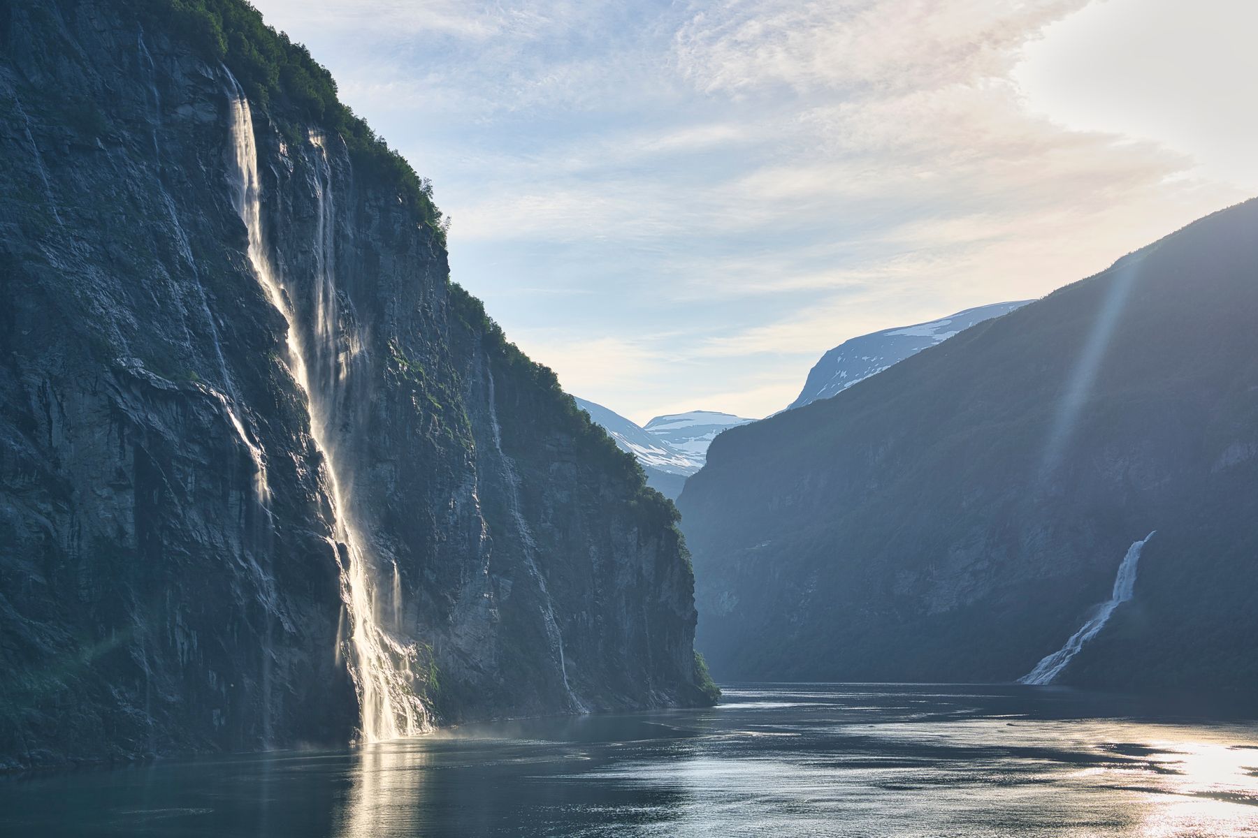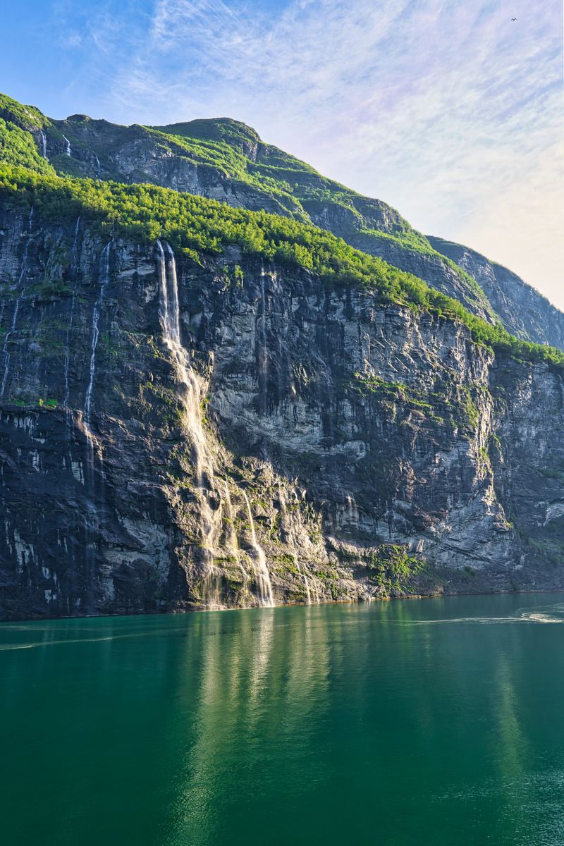 01.07.2022. Halb sieben. Es ist noch viel zu früh. Aber befinden uns schon auf dem Geiranger Fjord. Der Fotograf muss sofort an Deck. Meine Frau dreht sich im Bett noch einmal um. Schnell etwas angezogen. Nicht genug, wie sich an Deck gleich herausstellt. T-Shirt und Hemd sind eindeutig zu wenig, zumal wenn ich die dick eingepackten Mitreisenden sehe, die sich schon zu Scharen an Deck versammelt haben. Aber die Zeit, noch einmal auf die Kabine zu gehen, habe ich auch nicht. Also muss ich frieren.