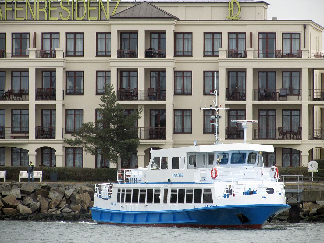 Für Gäste der Warnow-Seite der „Yachthafenresidenz Hohe Düne“ ist die Mini-Kreuzfahrt von Hohe Düne nach Warnemünde übrigens bereits im Übernachtungspreis inbegriffen. Sicher stellt sich jetzt beim Lesen dieser Tatsache der eine oder andere die Frage nach dem „Warum“. Nun, das ist genauso schnell erklärt wie plausibel: Sind diese Gäste doch diejenigen, die von den regelmäßigen Ablegemanövern – inklusive der bei der emotionalen Verabschiedung sich quasi direkt vor der Balkonbrüstung bietenden herzzerreißenden Szenen mit lautstarkem Schluchzen und den besten Wünschen für eine gesunde Wiederkehr der abreisenden Kreuzfahrer – von morgens um 10 bis abends um 19 Uhr das alles live mitbekommen. Da ist es nur fair, sie nicht als Zaungäste außen vor zu lassen, sondern sie aktiv ins Geschehen einzubinden und sie direkt an diesem sicherlich unvergesslichen Erlebnis teilhaben zu lassen.