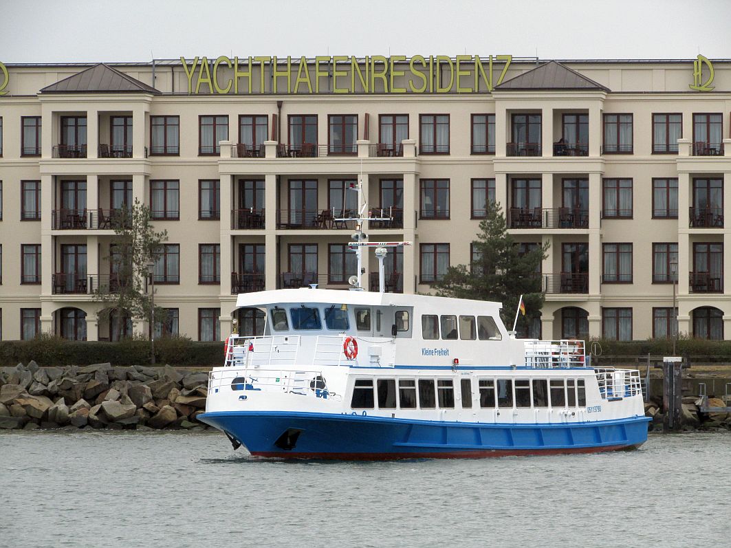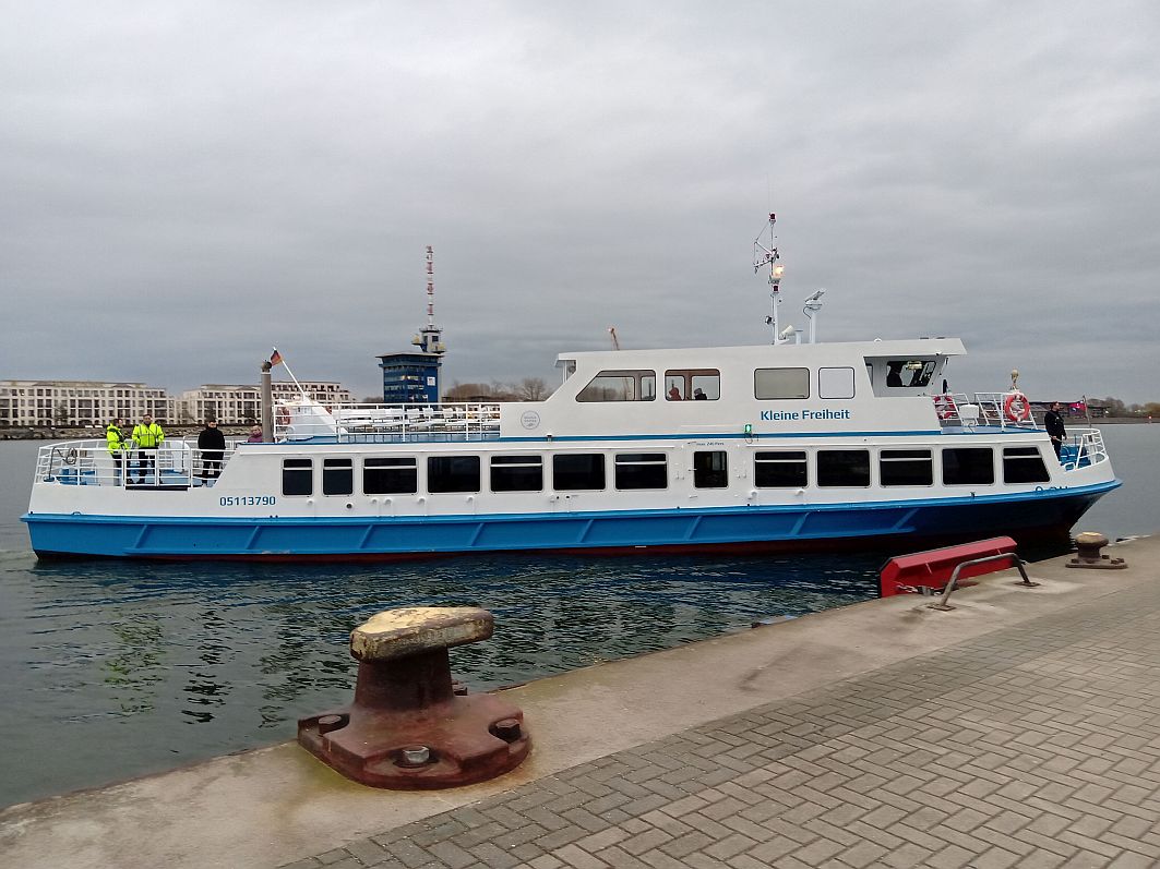 Im maritimen blau-weißen Design präsentiert sich das schnittige Schiffchen – mit geschwungener Linie, rundlichem Bug und abgeflachtem Heck. Und sein Name ist definitiv Programm: „Kleine Freiheit“. Leider war der Name „Große Freiheit“ bereits vergeben. Bei Warnow Cruises wollte man letztlich kein Risiko eingehen und hinsichtlich eines Anspruchs auf diesen Namen nicht auch noch den Ring in den Hut werfen. Nicht, dass es da letztlich noch Verwechslungen mit so einer anderen Reederei kommt …