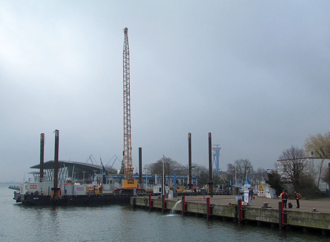 Tatsächlich habe ich das Glück, eine halbe Drehung des Schiffes auf dieser unter Wasser angebrachten Plattform miterleben zu dürfen. Hierfür muss sich das Schiff auf einer ganz bestimmten Position befinden. Über einen großen, an der Kiellinie der „Kleinen Freiheit“ befindlichen Magneten wird es dann auf seine endgültige Position gebracht und schon beginnt die Unterwasser-Drehscheibe ihre Arbeit. Somit müssen Kapitän und Brücken-Crew diese Tätigkeit nicht mehr selbst übernehmen. Man hat somit inzwischen Zeit für eine Tasse heiße Schokolade oder ein Stück „Kalten Hund“.