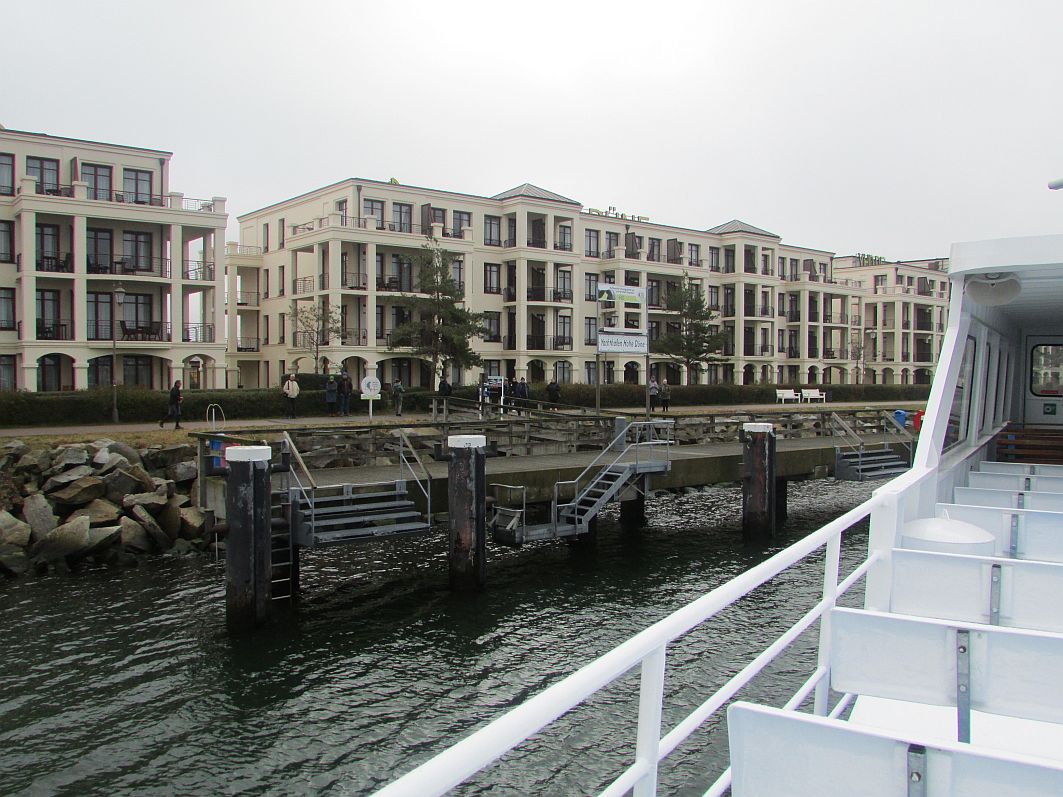 Nach rund drei Minuten Fahrzeit legen wir an der zweiten und auch letzten Destination dieser Reise an, während sich am Check-In Hohe Düne bereits einige neue Kreuzfahrer eingefunden haben. Meine wunderschöne Kreuzfahrt mit einem gemütlichen Schiff, in das ich mich auf den ersten Blick verliebt habe, ist gleich vorbei. Wehmut macht sich breit. Niemals werde ich erfahren, wer meinen Platz an der Reling auf der nächsten Reise einnimmt. Und ich werde auch nicht wissen, wer der neue „Mieter“ meiner Außenkabine wird.