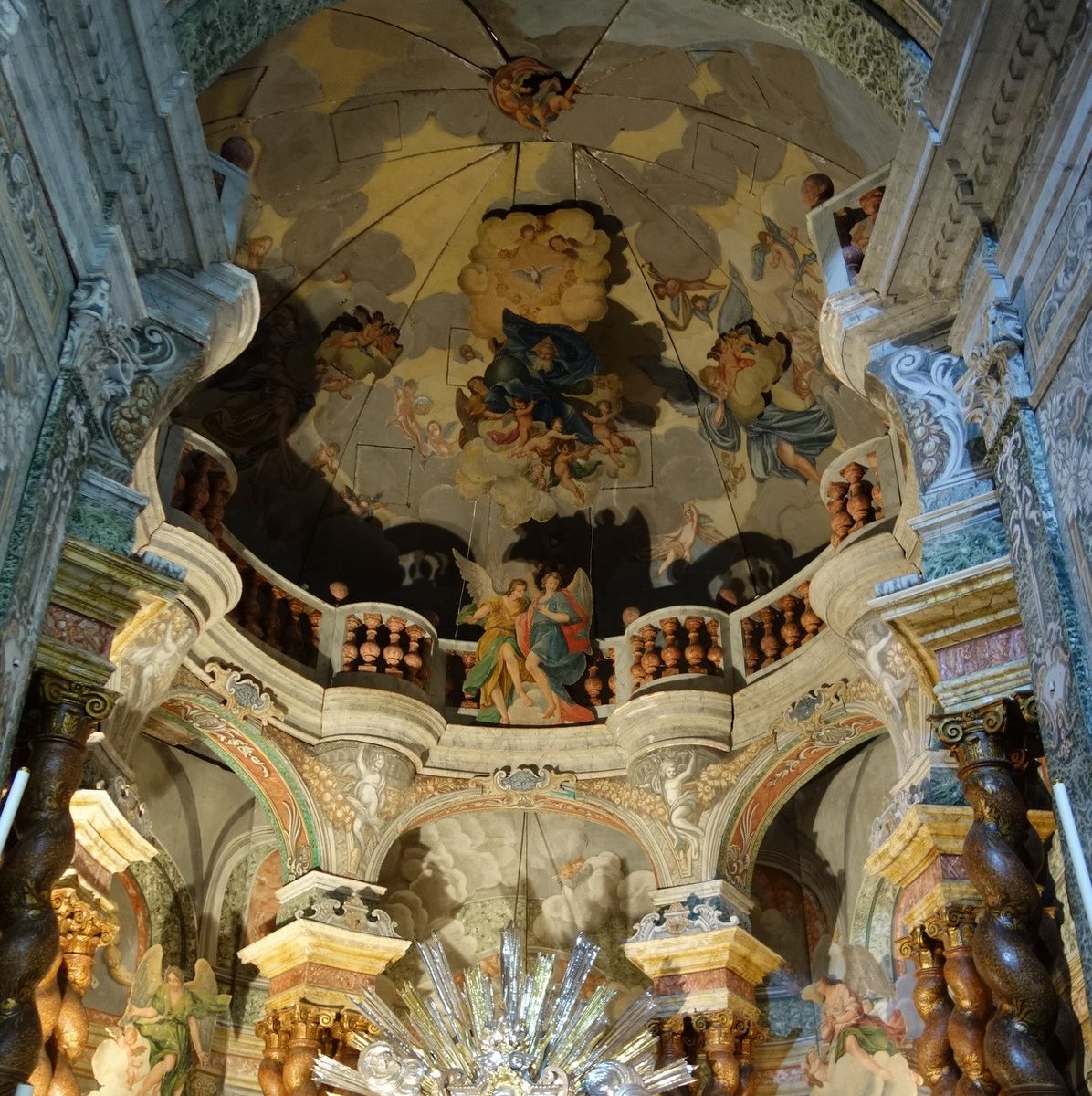 Wie schon damals in Valetta pflastern hier Leichen unseren Weg. Die großen Fliesen auf dem Boden sind meist Grabsteine und wer genau hinschaut, kann neben der verschiedentlichen Abbildung vom Tod auch Namen, Rang, Sterbedatum und Lobeshymnen erkennen.