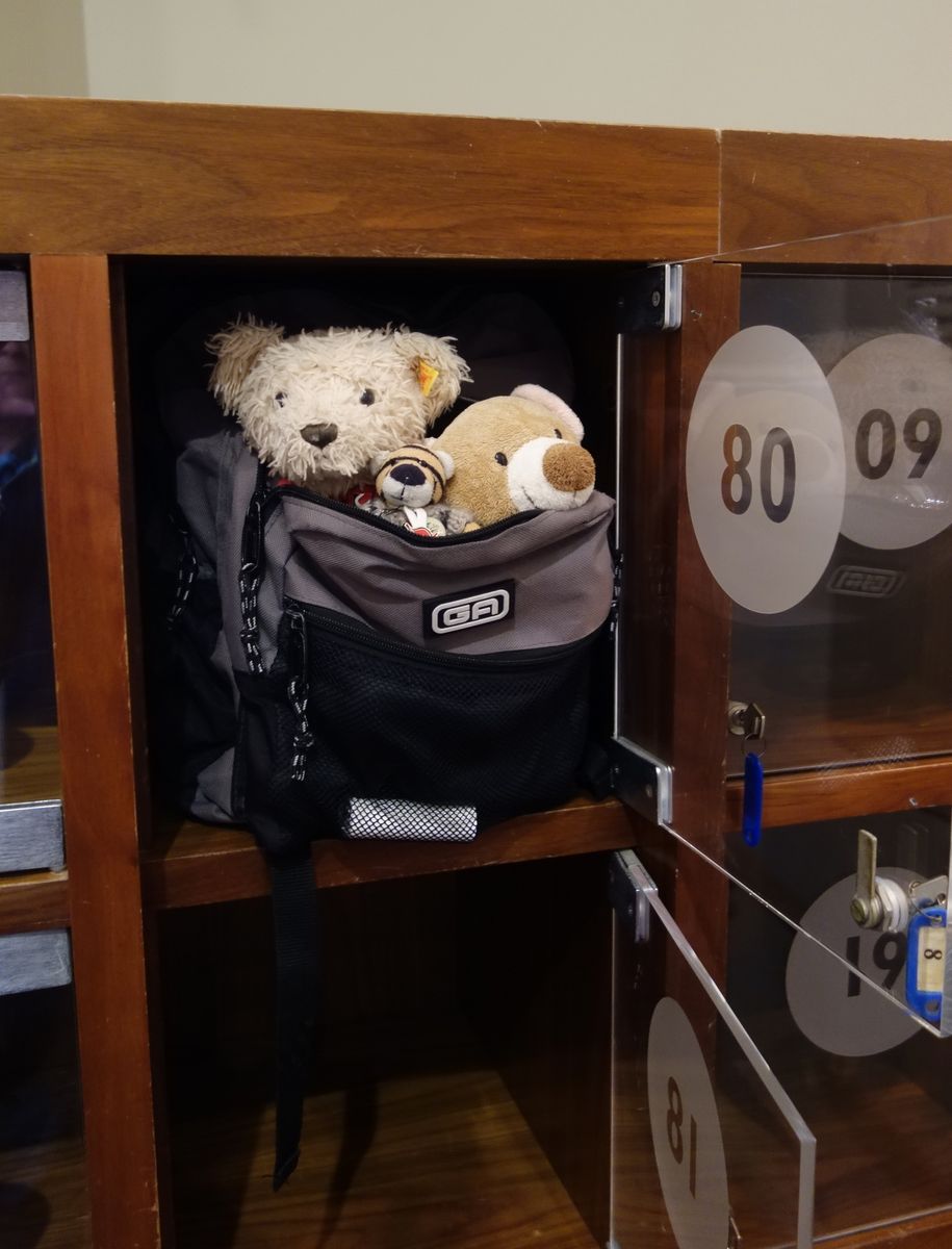 Jedenfalls darf unser Mobilheim, der Rucksack, nicht mit rein und stattdessen werden wir samt diesem in ein Schließfach mit Plexiglasscheibe gesperrt. Klappe zu und jetzt grinst der Träger und geht, (wer zuletzt lacht…) von der "Last" befreit des Weges.