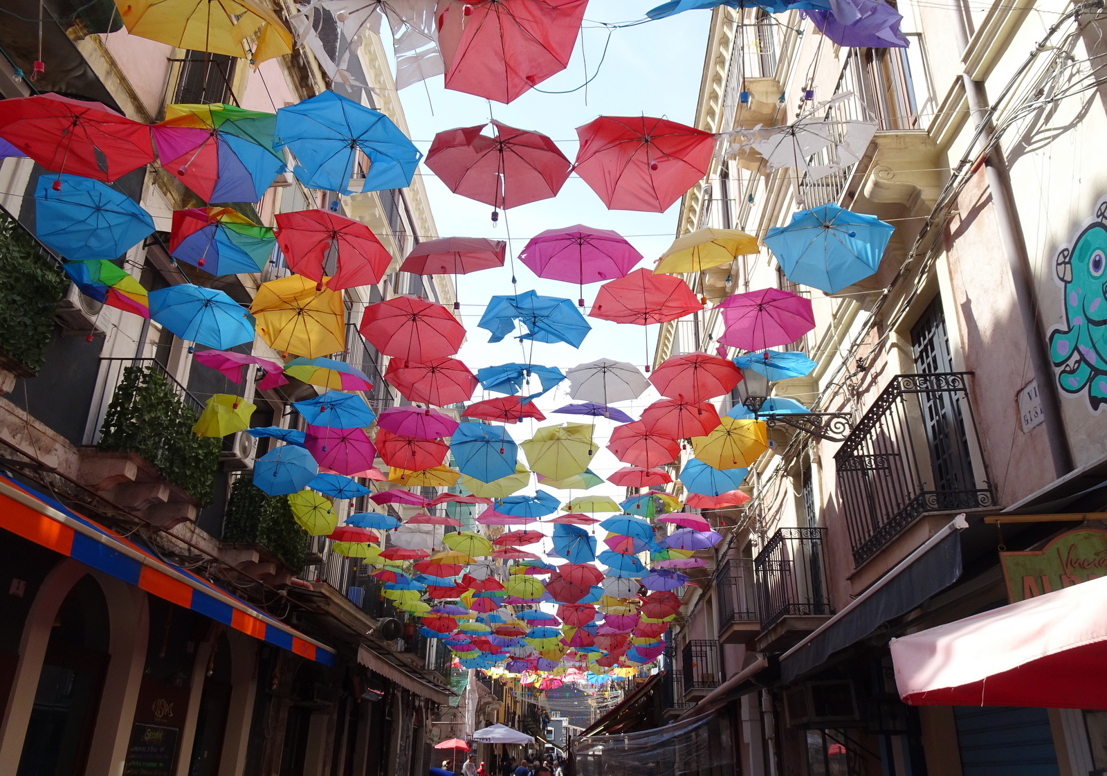 Halbwegs parallel zur Via Etnia geht es jetzt runter und nicht irgendeine Kirche oder ein Palazzo, sondern das Schuhgeschäft Deichmann auf dieser Via Etnia zeigt uns, zwischendurch zwischen den Häuserzeilen erkennbar, das wir nicht weit vom Weg zum Hafen abgekommen sind.