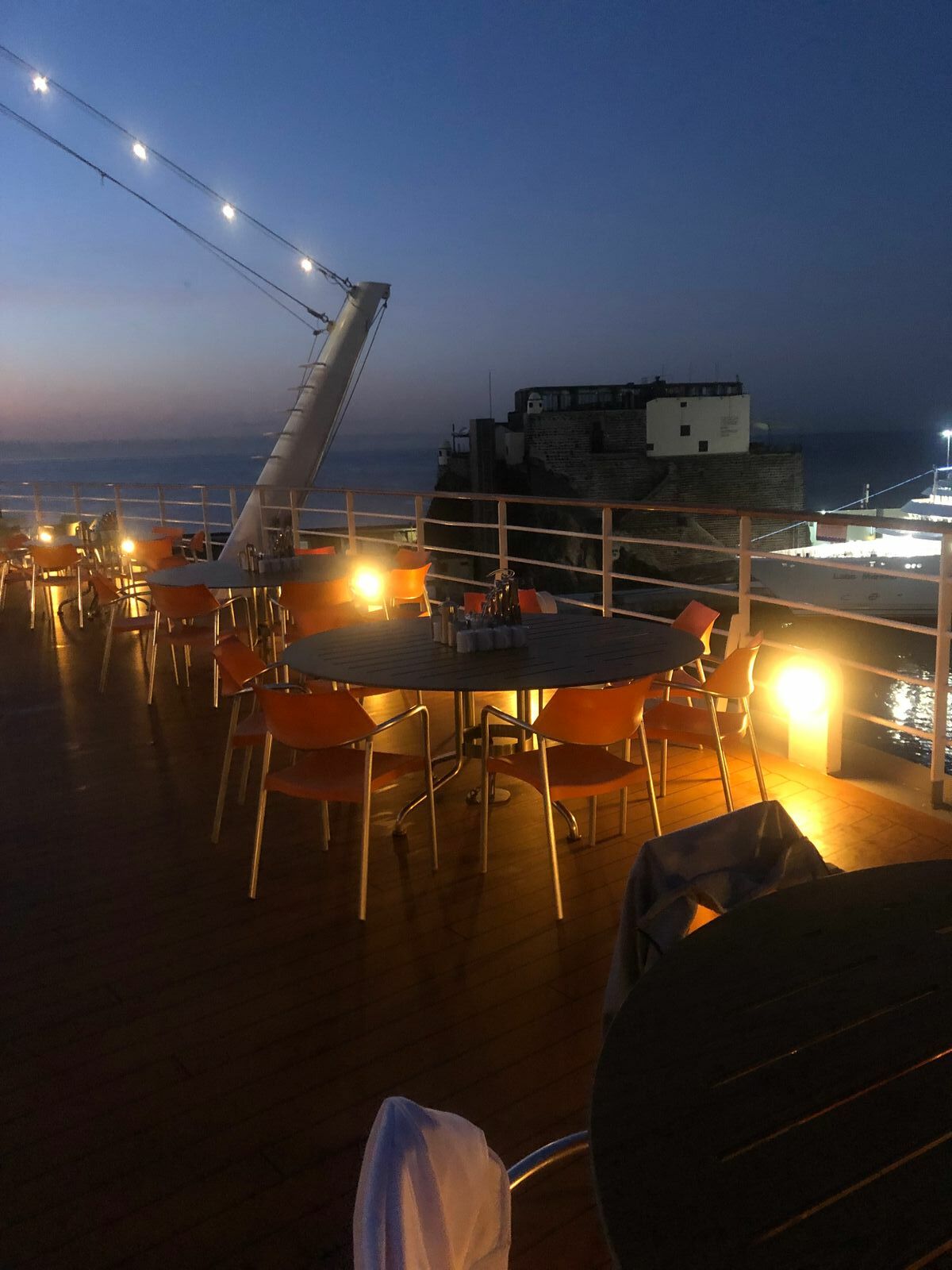Leider ist es auch heute Abend sehr kühl an der Ocean Bar, so ziehen wir uns wieder relativ zeitig auf unseren geschützten Balkon zurück, genießen eben hier unser verdientes Kaltgetränk und später natürlich die spezielle Verabschiedung von Inacio.