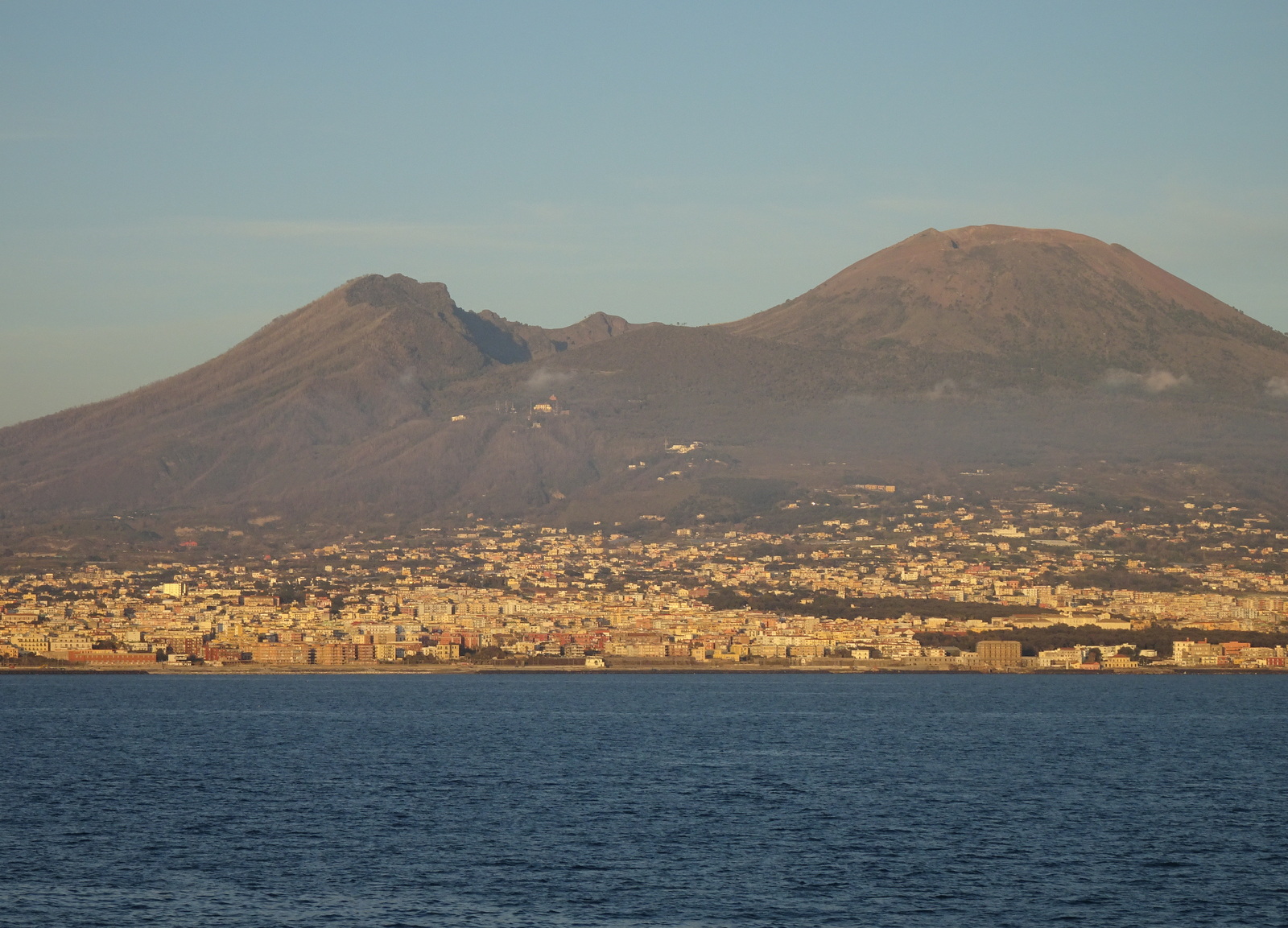 War schon interessant dieses Neapel bei diesem lustigen Pleiten, Pech und Pannen – Tag. Denken wir uns später so, als hinter uns langsam der Vesuv im Abendlicht entschwindet.
