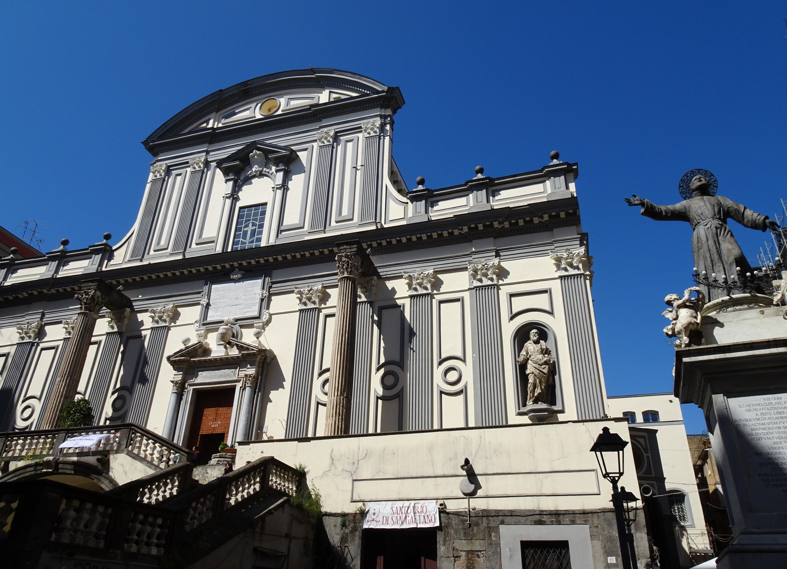 Den letzten Krippenstand hinter uns, stehen wir nun auf dem Piazza S. Gaetano und dies nicht ohne Grund. Nicht diese auffällige nette Kirchenfassade,