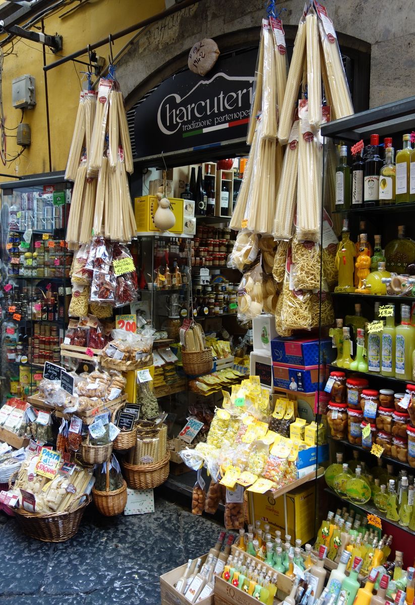 Ein paar Ecken weiter schlagen wir uns nach links, nach oben in die noch engere Via San Gregorio Armeni, bekannt auch als „Weihnachtsstraße“, weil sich hier rechts und links nur Geschäfte mit Krippen, Krippenbedarf und Weihnachtsdeko befinden.