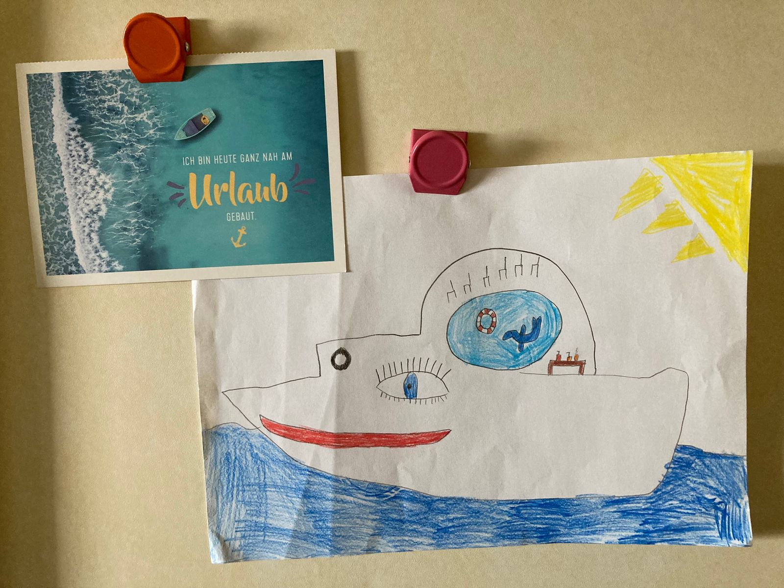 Noch schnell die Kabine ein bisschen mit Hilfe der mitgebrachten Magnete ein wenig verschönert...
