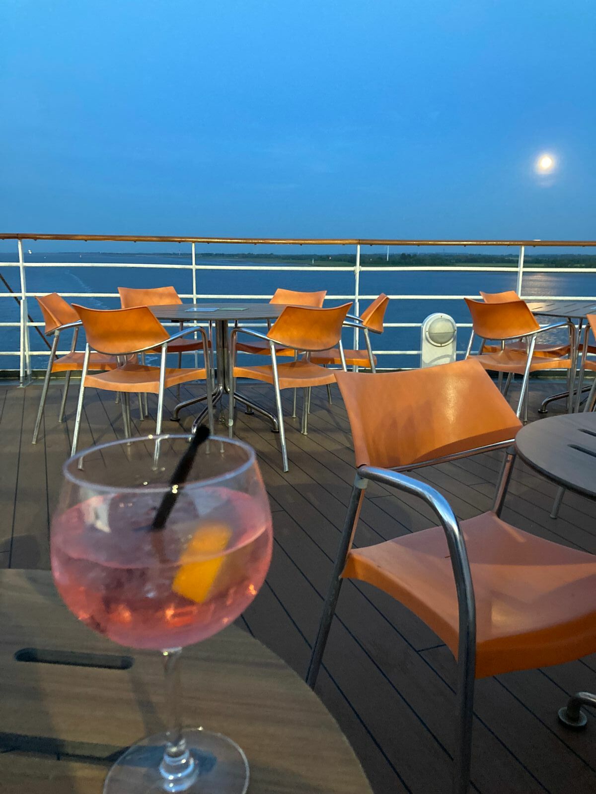 ... und dann machen wir uns gegen 20:45 auf in Richtung Deck 12, denn gleich ist Sonnenuntergang.
