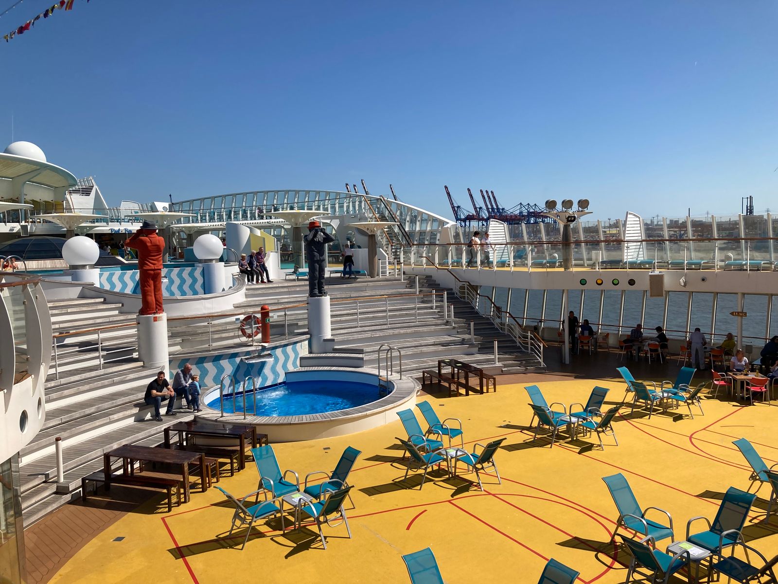 Um viertel nach zehn sehen wir ihn auf dem Pooldeck wieder.