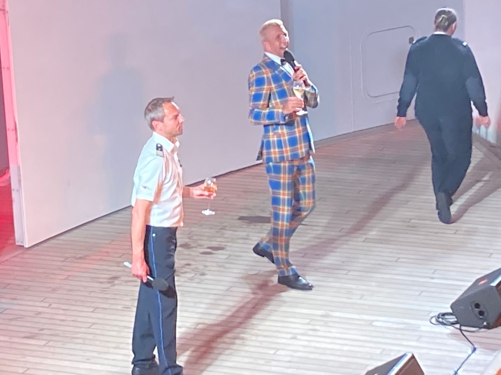 Dort singt er nicht, sondern stößt mit uns und dem Hoteldirektor in bester Aida-Manier an.
