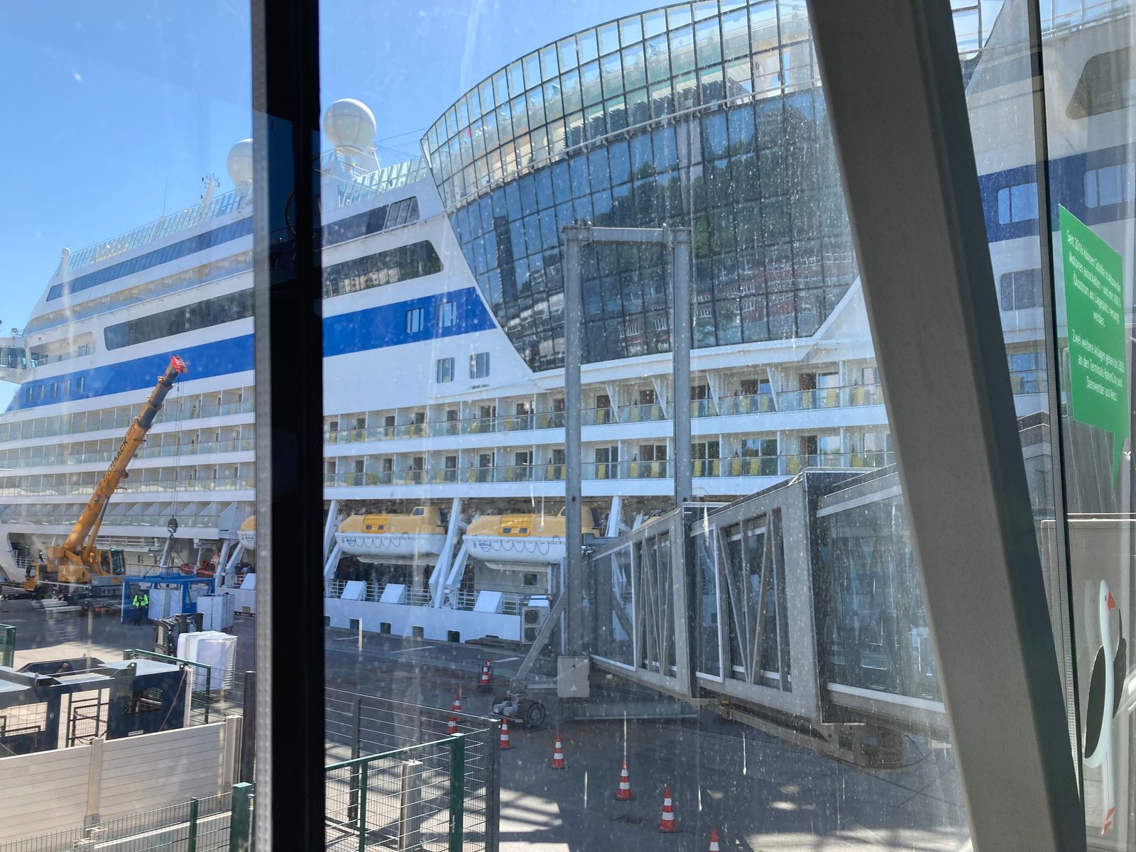 „Fahren Sie auch mit der Aida?“ fragt der Herr aus dem Auto neben uns allen Ernstes (unsere Kofferanhänger sind wirklich nicht zu übersehen), worauf Nele trocken antwortet: „Nein, wir fahren im Rettungsboot hinterher.“