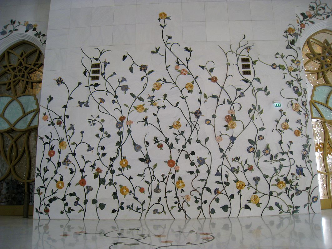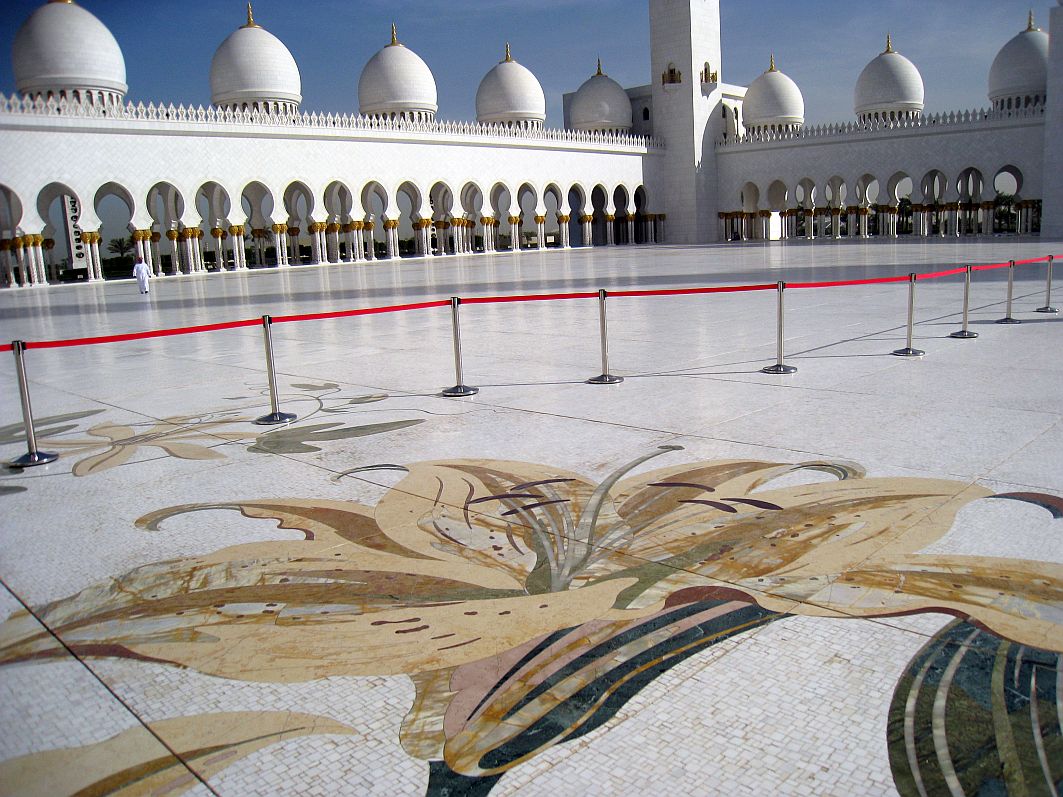 Herrliche Blütenornamente verzieren die Böden der Sheikh Zayed Grand Mosque