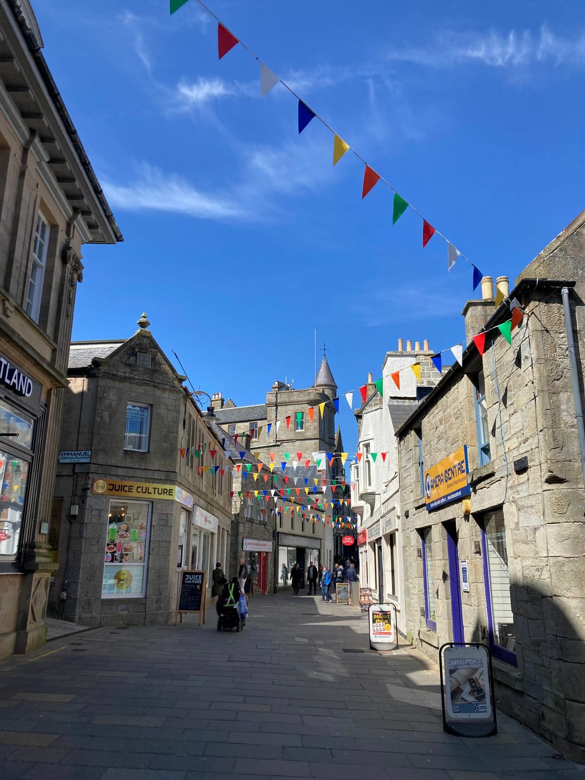 Dann schlendern wir bei klarem blauen Himmel noch durch das hübsche Städtchen, bevor wir uns wieder zum Tendern anstellen.
