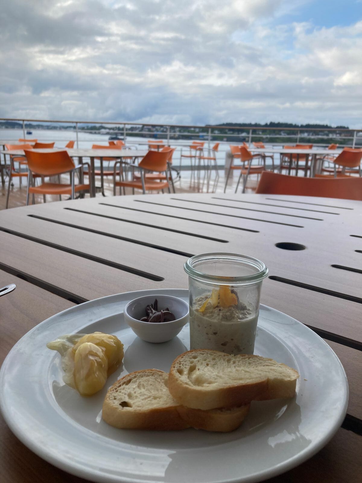 Wir frühstücken ganz in Ruhe im Belladonna – draußen – und es ist noch sehr bedeckt. Wir verpassen also erstmal nix.
