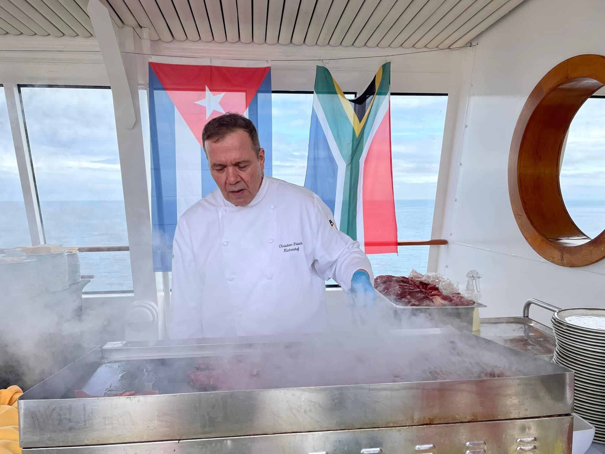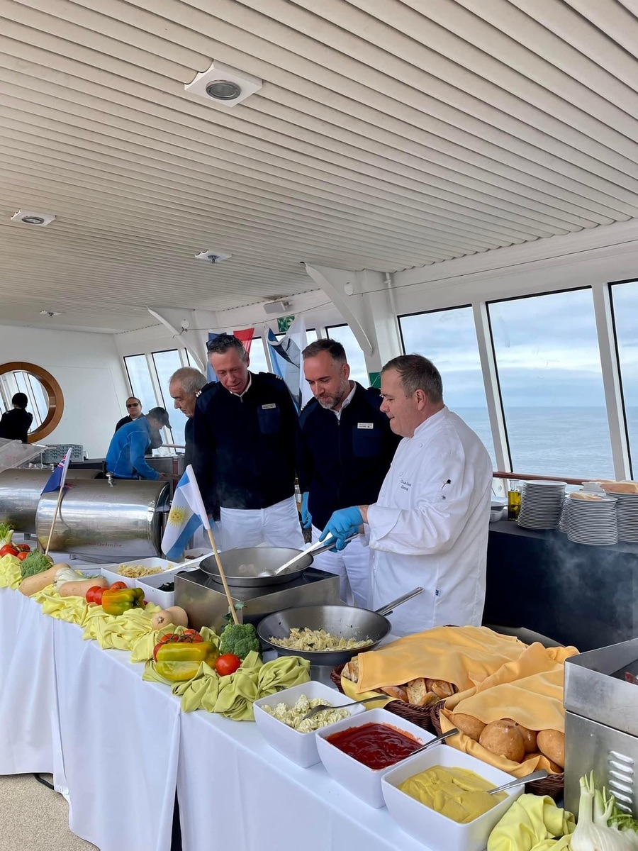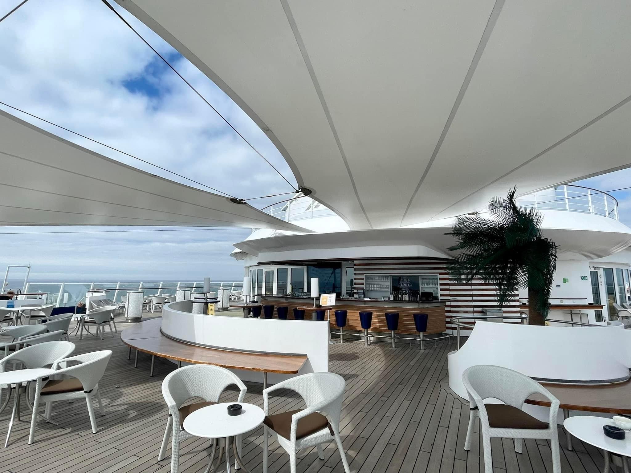 Heute war ab 11:45h auf dem Pooldeck ein Poolbrunch „Very British mit Baraktion Bramble Gin.“ Sogar die Sonne kam zum Vorschein. Uns hat es sehr gut geschmeckt, auch wenn die Nudeln scharf 🌶️ waren 😁