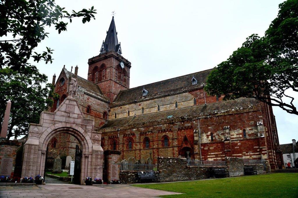 Ausgangspunkt für die Errichtung des Gotteshauses war ein Verwandtschaftsstreit. Zwei von den Wikingern abstammende Vettern vertrugen sich – frei nach dem Motto „Blut schweißt zusammen“ – zunächst ganz gut. Beide waren Earls und wohnten quasi Tür an Tür. Das ging nicht gut. Und wie es in der Geschichte so oft geschah: Der eine gönnte dem anderen das Schwarze unter den Fingernägeln nicht und sie lösten den Konflikt mit Waffen. Earl Magnus wurde von Earl Haakon einen Kopf kürzer gemacht. Natürlich bei einem Treffen, bei dem Streitigkeiten zwischen den beiden Earls geschlichtet werden sollten. So einfach und auch wirksam wurden damals Zwiste beigelegt … Magnus´ Neffe stiftete die Kathedrale, zunächst im kleinen Format. Der noch nicht heilige Magnus fand seine Ruhestätte unter dem später erbauten Nordturm; heilig gesprochen wurde er erst 1898. Da wie üblich die Kathedrale nicht in kurzer Zeit erbaut werden konnte sondern sich die Errichtung über 300 Jahre hinzog, sind als Ergebnis romanisch-normannische und frühgotische Stilrichtungen erkennbar. Besonders imposant sind im Inneren die gewaltigen Säulen.
