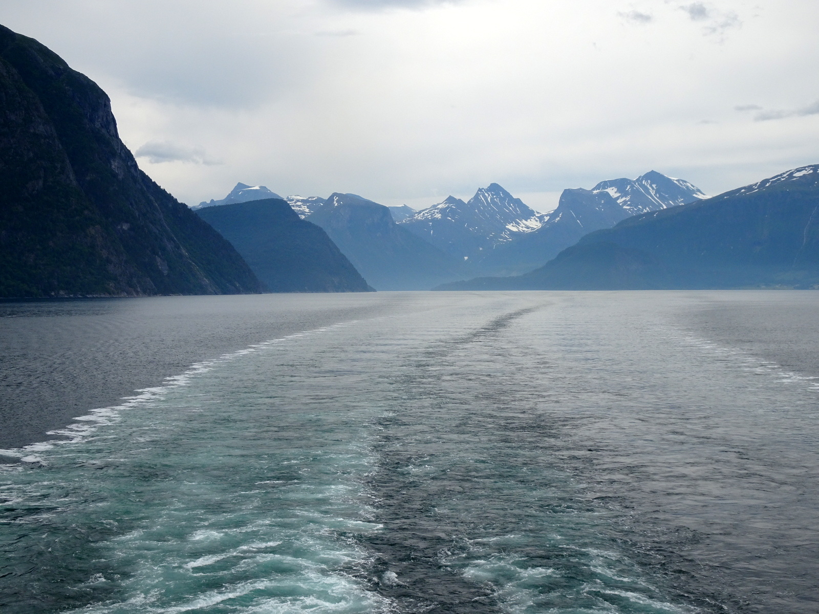 Noch nicht alle Passagiere sind an Bord, wir fahren aber trotzdem von Andalsnes los. Den Rest sammeln wir später ein. Die machen einen Ganztagesausflug. Und wenn die wiederkommen, haben wir schon längst wieder angelegt.