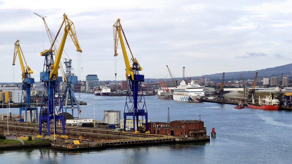 Eine meiner Lieblingsinseln lockte mich. So sehr, dass ich bereits sehr früh wach war, ungefähr 6.30 Uhr die Balkontür öffnete und nach Jahren wieder die irische Küste sah. Zwar nicht die der Republik Irland, die mich nach drei individuellen Urlauben noch immer fasziniert, sondern die von Nordirland. Eine lang gezogene Steilküste unter grasgrünen Wiesen und Weiden. Sonst nichts außer blauem Himmel. Ja, der Himmel sah gut aus trotz der vorhergesagten 90 %igen Regenwahrscheinlichkeit. Aber als wir uns eine halbe Stunde später der von Hügeln umgebenen Bucht von Belfast näherten,