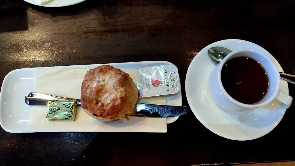 Im Gegenteil – ganz frische, noch warme Scones zum Tee oder Kaffee. Es hätten mehr Scones sein können … außen knusprig, innen fluffig. Einfach nur lecker …