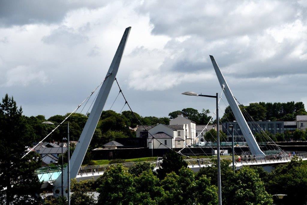 die keineswegs einen Banküberfall vorbereiteten. Der Blick auf die Friedensbrücke über den River Foyle durfte nicht fehlen,