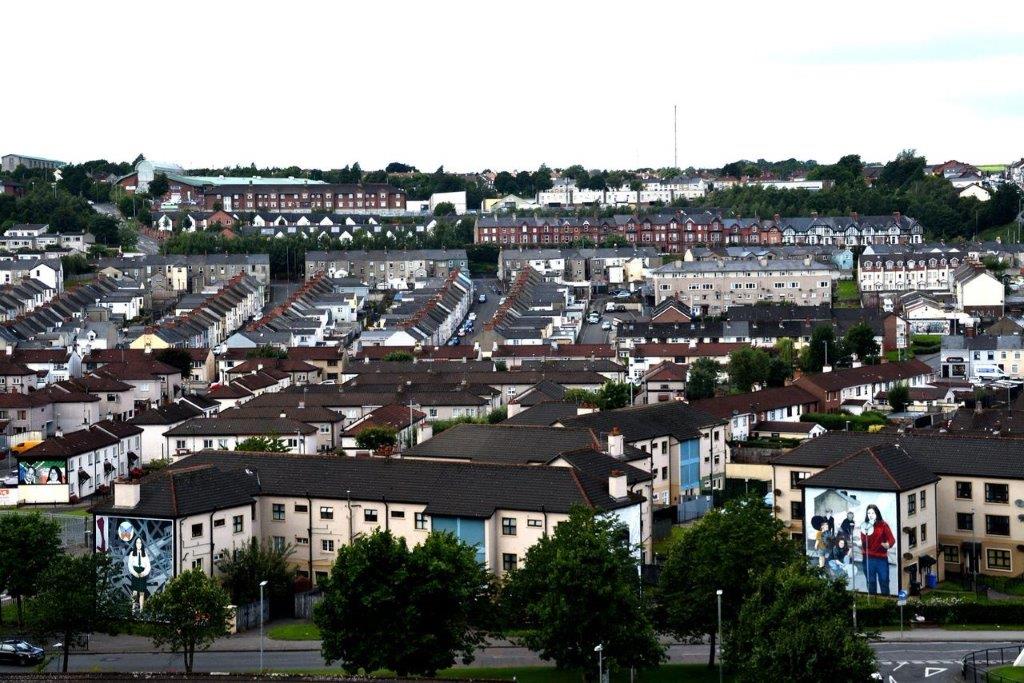 Beeindruckend war dabei auch das Häusergewimmel der Bogside mit unterschiedlichen Bemalungen der Giebel der Wohnblocks.