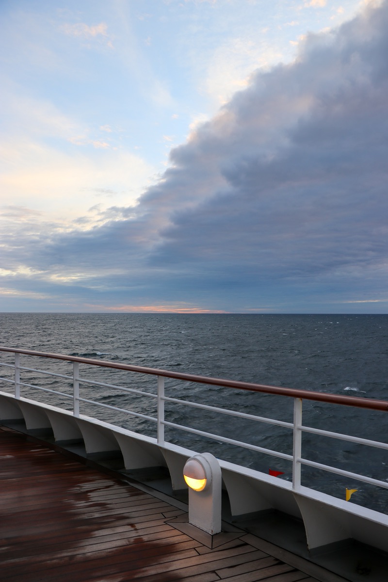 Um 15:15h gab der Kapitän Tobias Wirsig im Theater einen kleinen Routenänderung bekannt, damit wir trotzdem die Prins Christian Sund sehen können. Statt die östliche Einfahrt (wegen Eisberge und -scholle nicht durchfahrbar) nehmen wir nun die westliche Einfahrt.