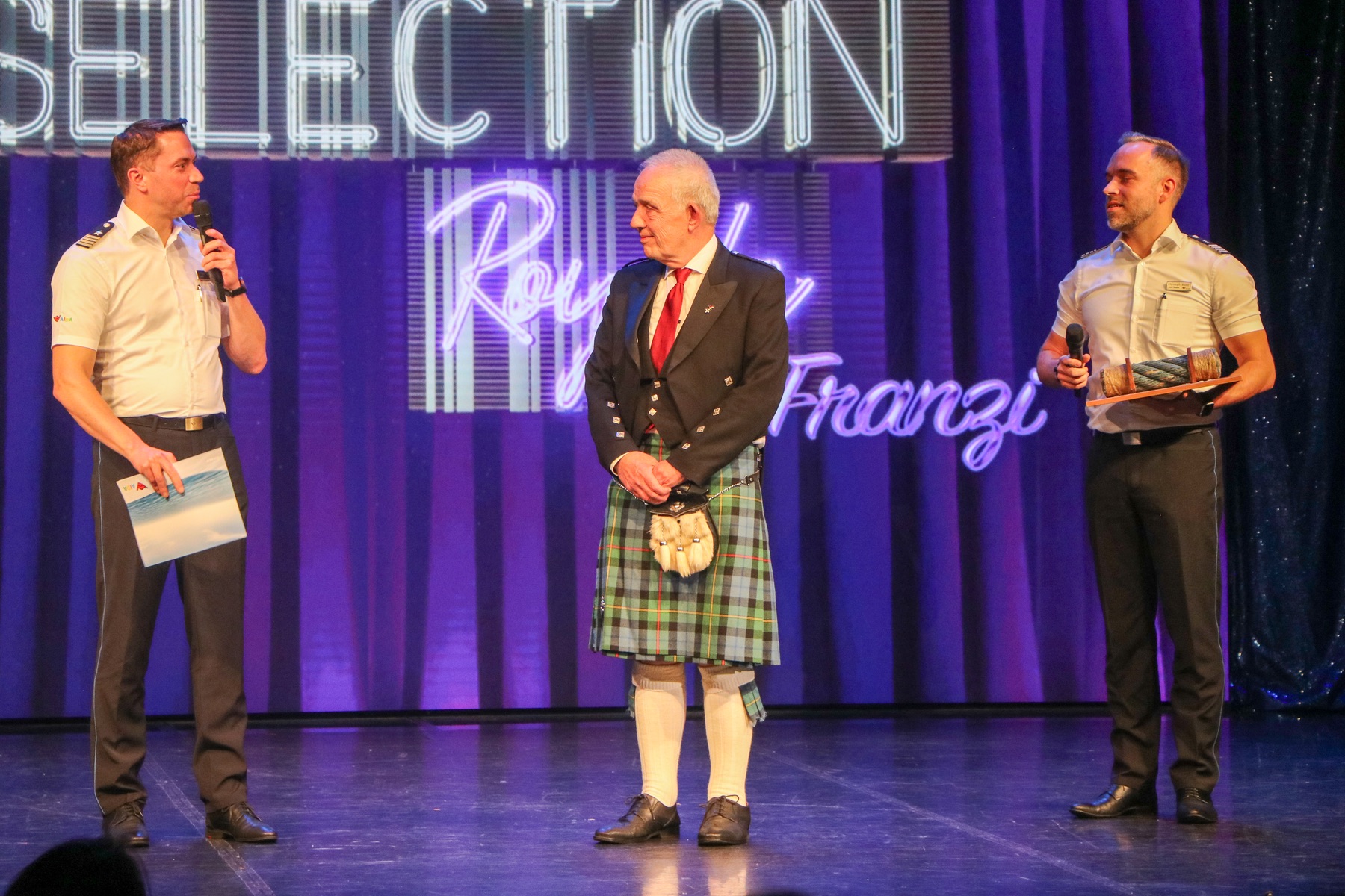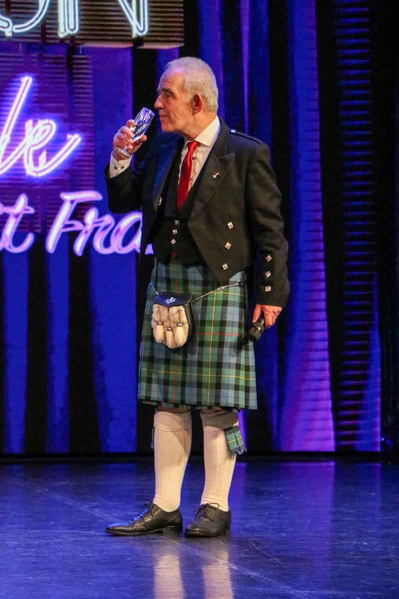 Nicht zu vergessen, weil immer wieder gefragt wurde: Unser Entertainmentmanager ist tatsächlich ein Lord - das Familienwappen beweist es. Aber stolz ist er eher darauf, seit kurzem Großvater zu sein. Und endlich wurde an diesem Abend auch die Frage beantwortet, was der Schotte unter seinem Kilt trägt.