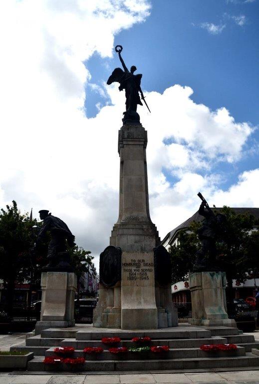 Sehr pompös mit der Siegesgöttin an der Spitze, den Namen der Gefallenen und zwei martialisch aussehenden Bronzesoldaten – ein Matrose, die Marine repräsentierend, und ein für das Heer stehender Soldat.