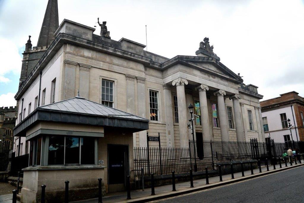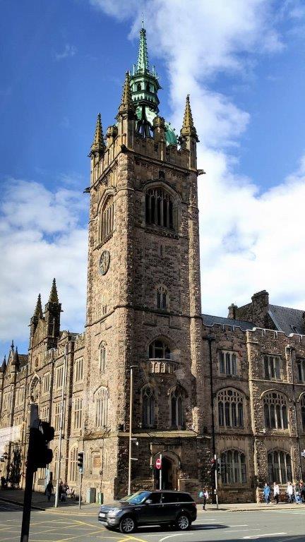 Da wir bei unserem Rundgang uns die St Columb’s Cathedral nicht näher ansehen konnten, beschlossen wir, sie nochmals aufzusuchen. Unmittelbar vor dem Kirchengelände stand schützend ein eindrucksvolles Gebäude – der Gerichtshof.