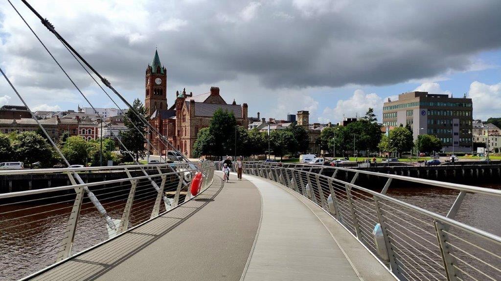 Leicht und S-förmig geschwungen verbindet sie seit 2011die inzwischen mehrheitlich katholischen Viertel auf dem Westufer des Foyle mit den mehrheitlich protestantischen Vierteln auf dem Ostufer. Sie ist lediglich für Fußgänger und Fahrräder vorgesehen und wird nicht nur von Touristen stark genutzt. Im Endeffekt ist sie auch ein Symbol der leidvollen Vergangenheit der Stadt: Sie stellt symbolisch einen im wahrsten Sinne des Wortes Brückenschlag zwischen den (hoffentlich nur) in der Vergangenheit verfeindeten Parteien dar.