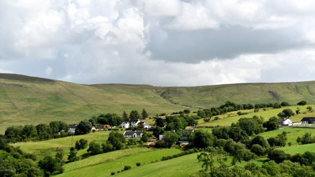 Mit diesen Überlegungen zurück in den Bus und gemütlich zurückgelehnt. Schnell lag Derry hinter uns und links und rechts von uns breitete sich die grüne irische Landschaft aus. Zunächst vorwiegend flach, dann aber hügelig.