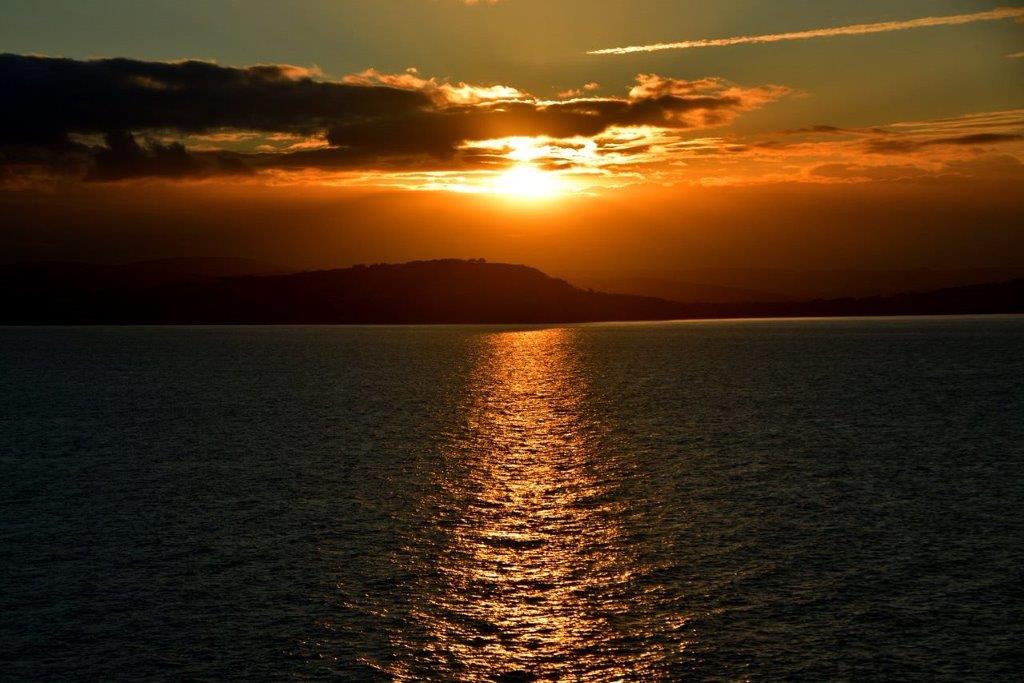 Es handelte sich um den Hauptsitz der Presbyterianischen Kirche in Irland, nebenbei als kommerzielles Konferenzzentrum genutzt. Die beiden letzten, einigermaßen vorzeigbaren Fotos entstanden nur deshalb, weil die Gebäude auf unserer Busfensterseite an uns vorbeizogen. Alle anderen Sehenswürdigkeiten wie z.B. die Oper, das Rathaus oder die Kathedrale waren für uns nur ausschnittweise erkennbar – sie lagen entweder auf der anderen Busseite oder wir fuhren zu schnell daran vorbei, wie z.B. am Titanic-Museum. Fazit: Die Stadtrundfahrt als solche war ermüdend und für die Katz. So waren wir froh, als wir vor unserem Schiff den Bus verlassen durften. Mit einem Bärenhunger, so dass wir innerhalb kürzester Zeit im Atlantik auftauchten. Während wir speisten, legte Mein Schiff 3 bei bestem Wetter ab und steuerte langsam unser nächstes Ziel an; nach dem Essen wir unser vorletztes Tagesziel: die Außenalster. Cocktail-Zeit. Bei optimaler farblicher Untermalung. Schöner konnten wir nicht von Nordirland verabschiedet werden …