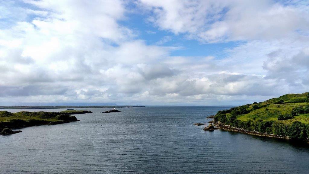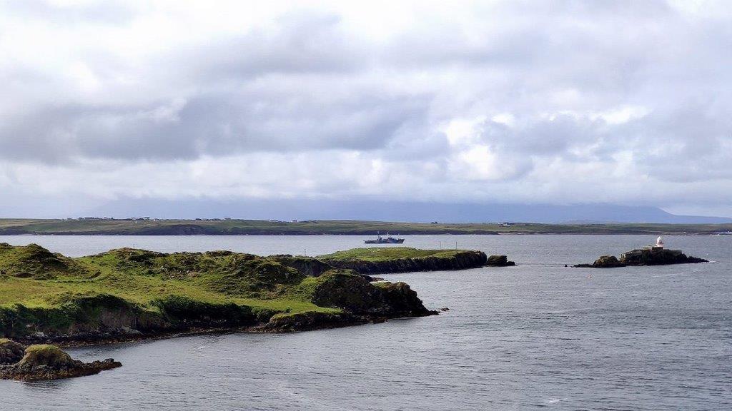 Nun aber schnell frühstücken, denn wir wollten das Einlaufen in die enge Bucht von Killybegs nicht versäumen. Und so geschah es! Kurz vor 10 Uhr standen wir mit den Kameras bewaffnet wieder ganz oben bei angenehmen 19°. Auf Steuerbord passierten wir Rotten Islands mit seinem Leuchtfeuer.