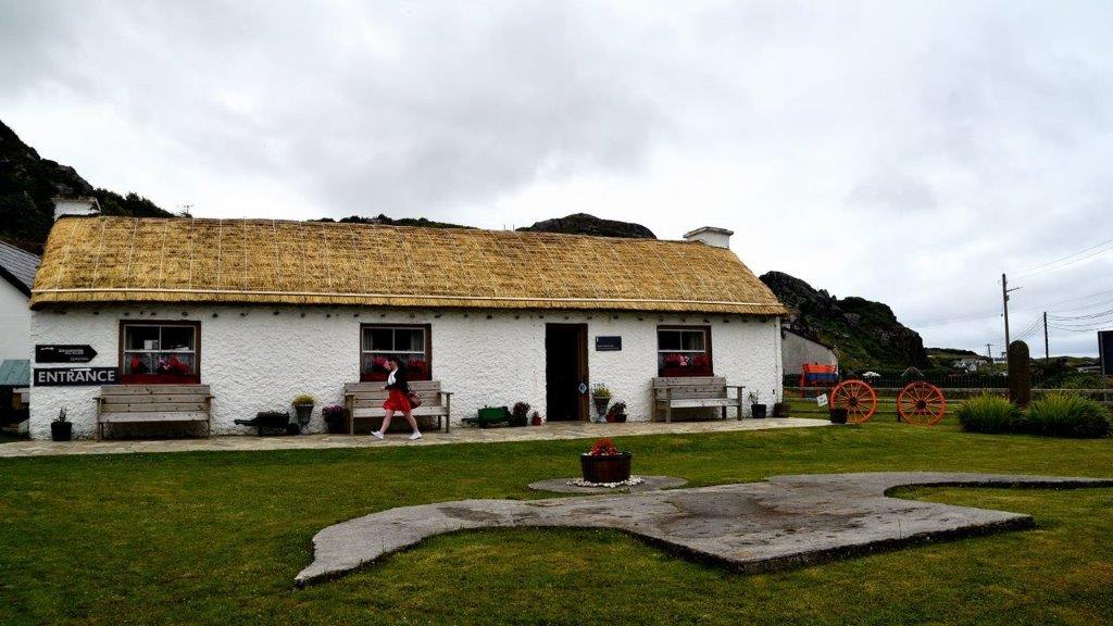 Einige Häuser, teilweise weiter voneinander entfernt. Nicht nur ein Pub, Gästehäuser, eineTankstelle mit angeschlossenem kleinen Laden. Das war´s im Großen und Ganzen. Wenn nicht das sich an einem Hügel schmiegende Glencolmcille Folk Village gewesen wäre. Ein Freilichtmuseum, klein, aber fein.